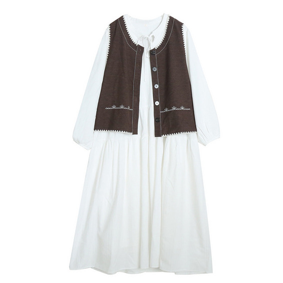 「刺繍入りベスト&ティアードワンピース」
