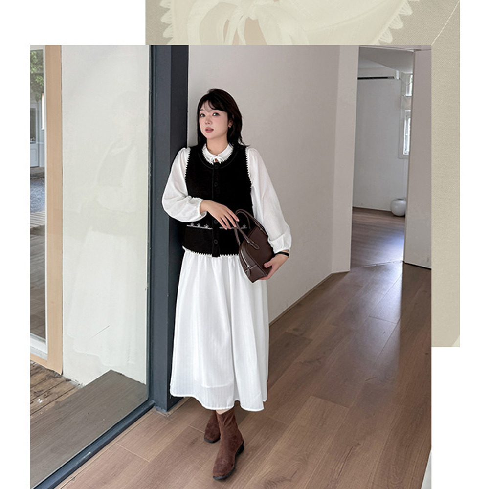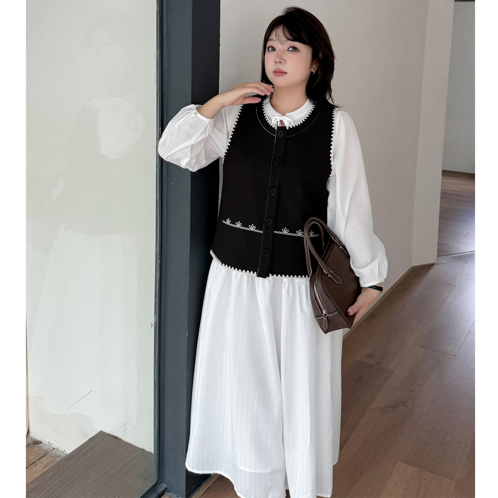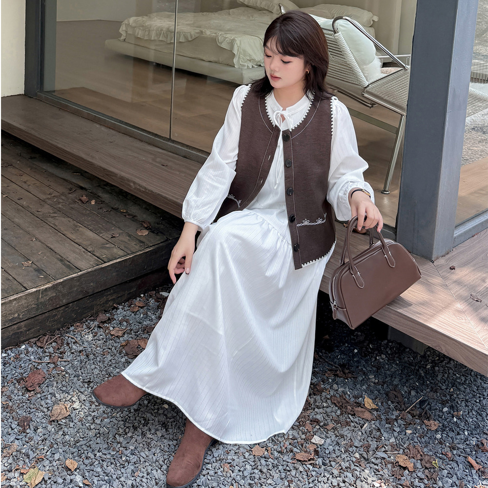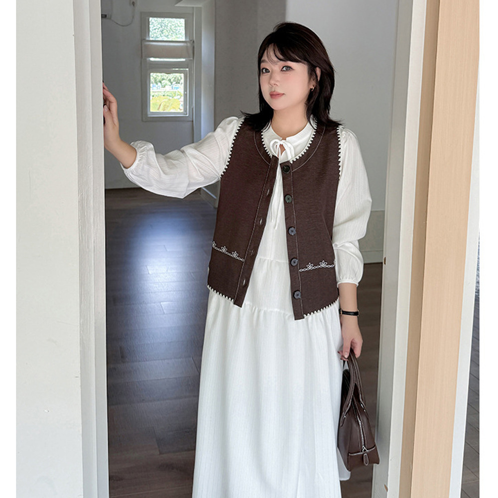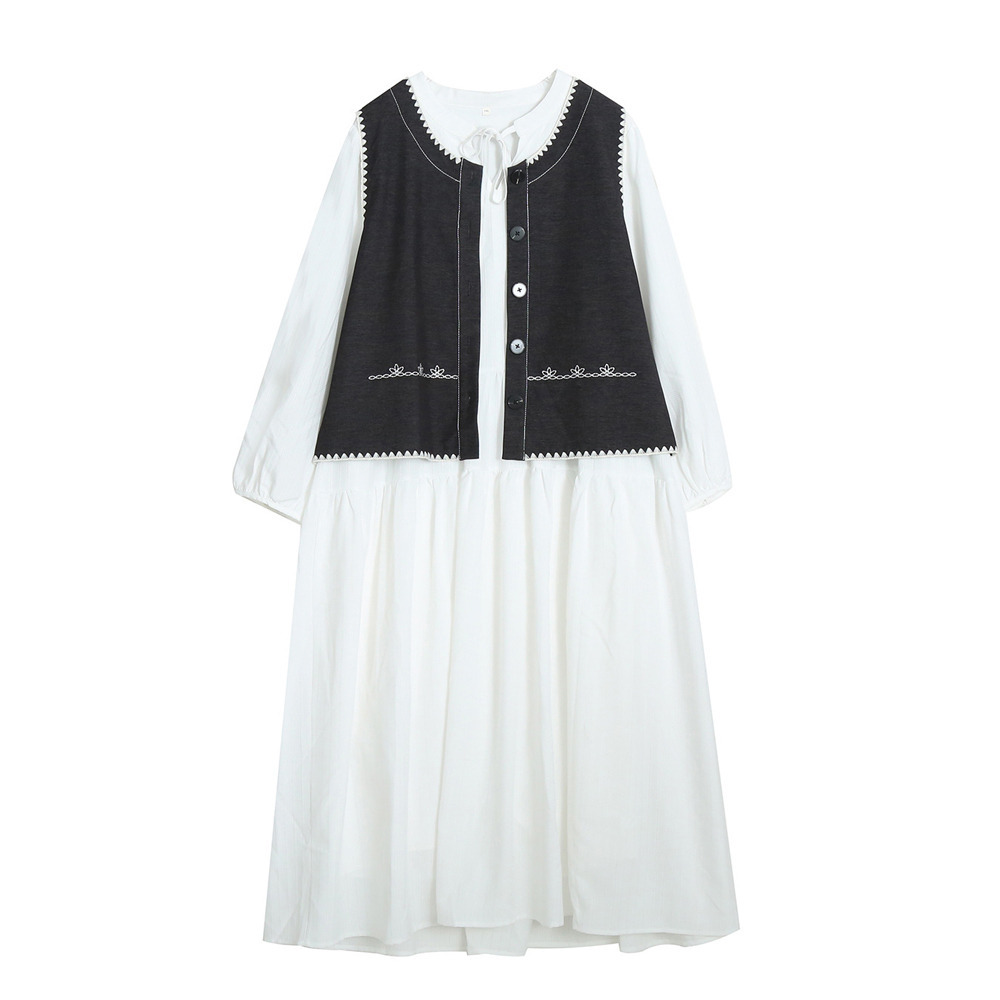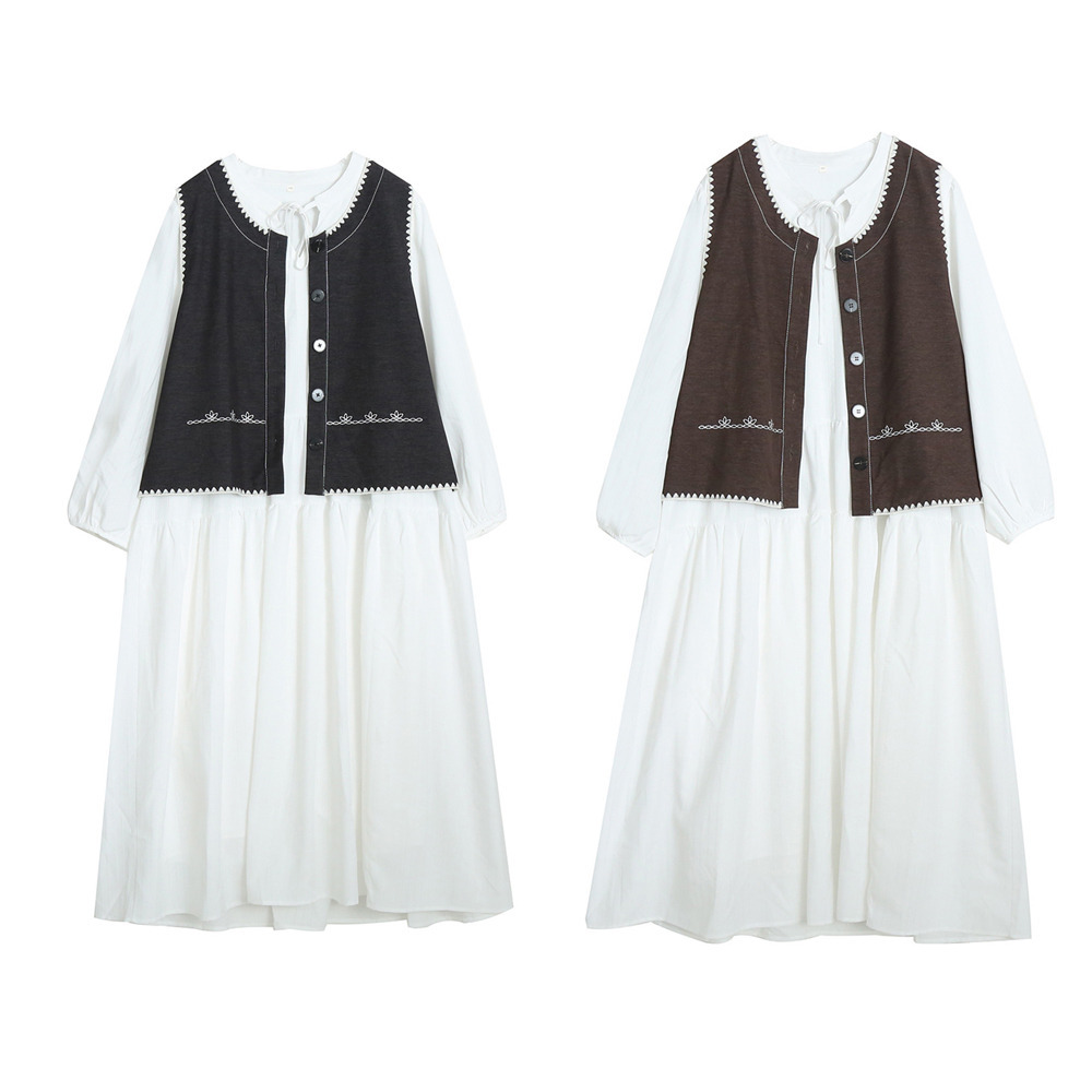 ホワイトワンピースにベスト2色バリエーションのセットアップ。