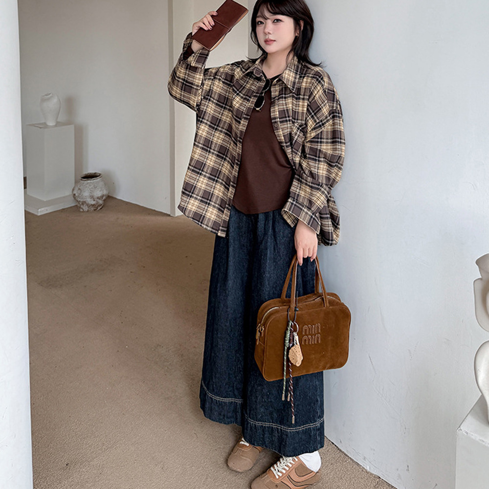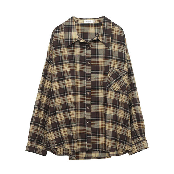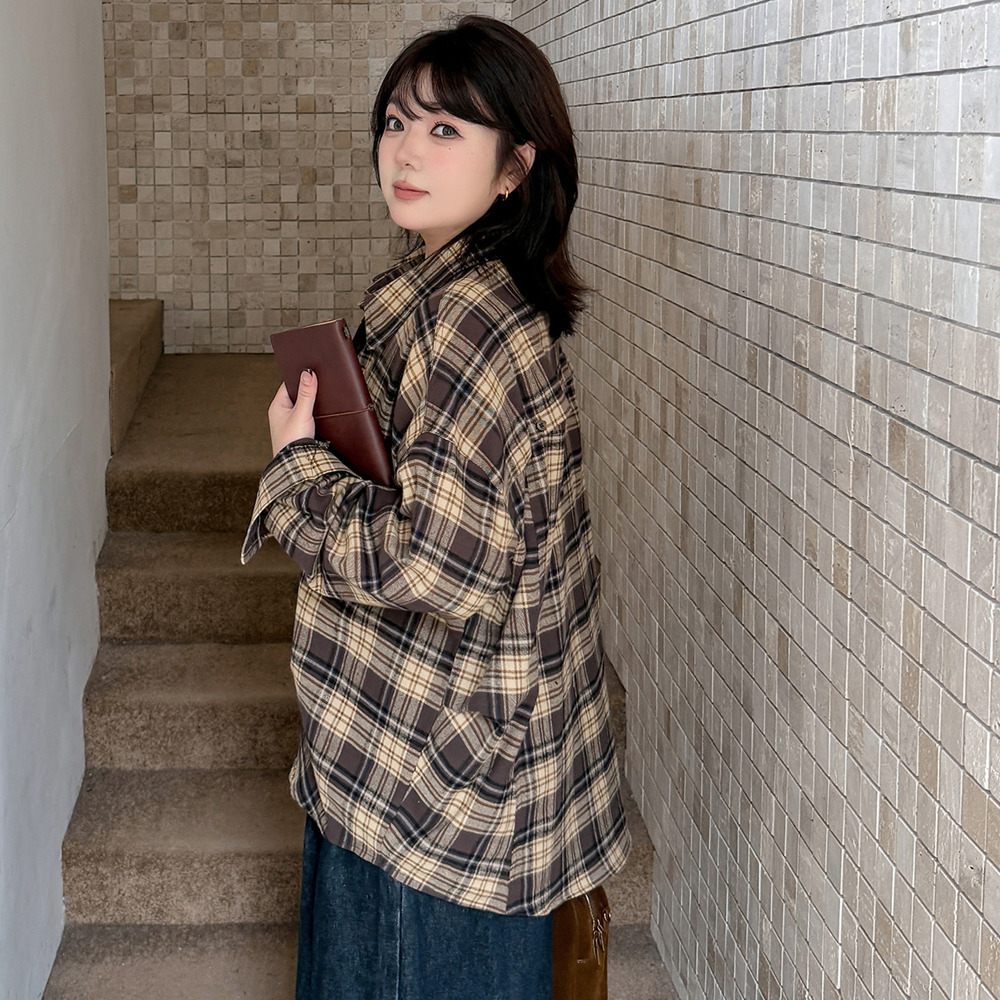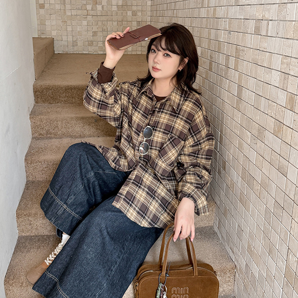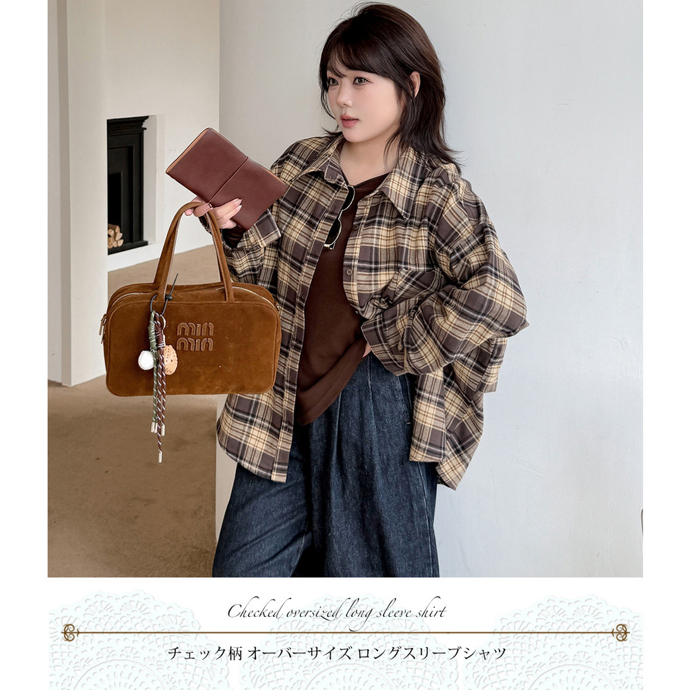レトロなチェック柄のオーバーサイズ長袖シャツ。