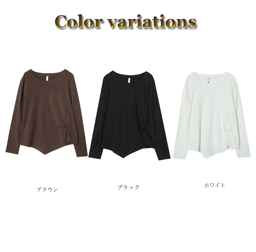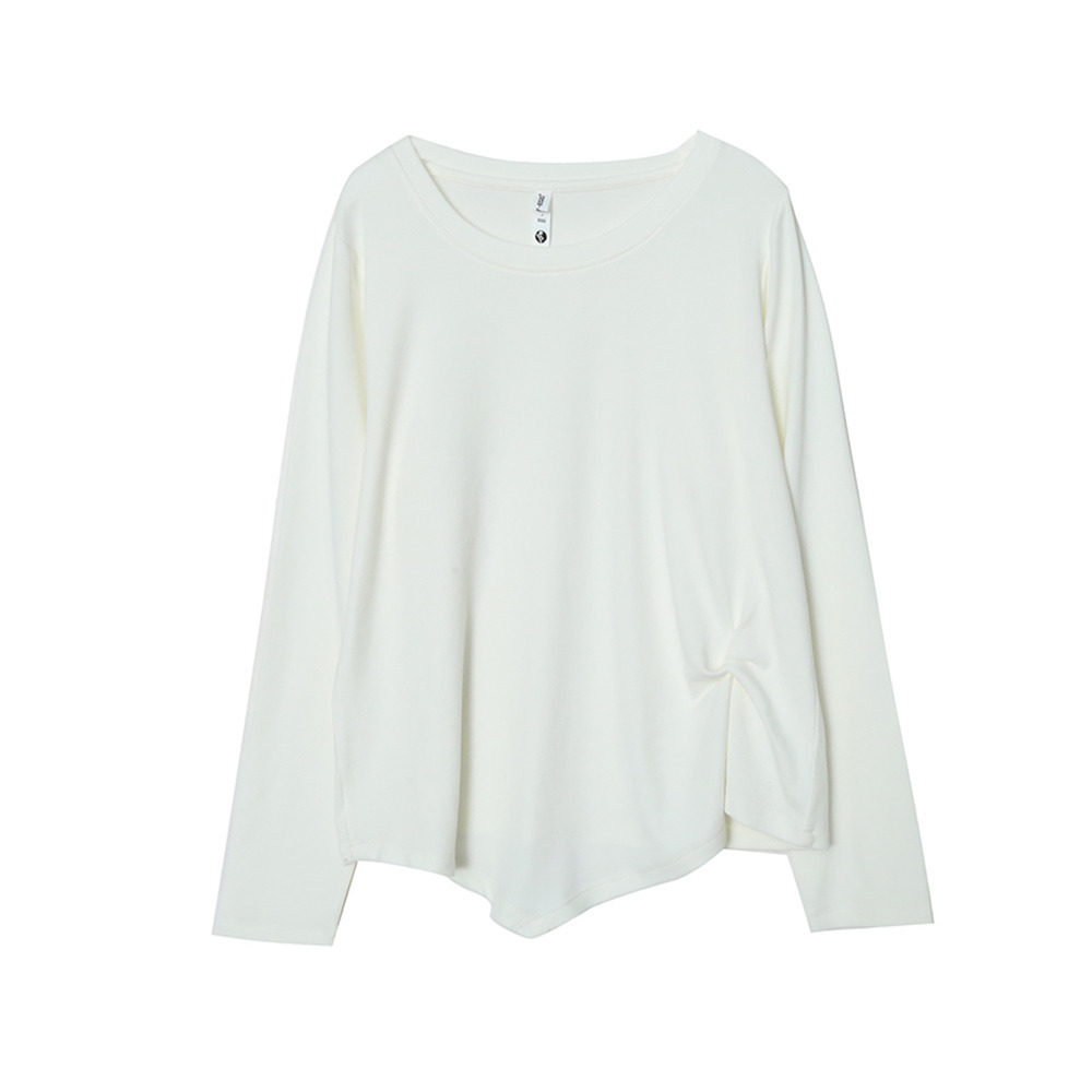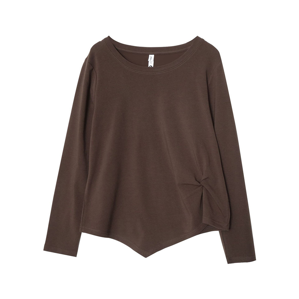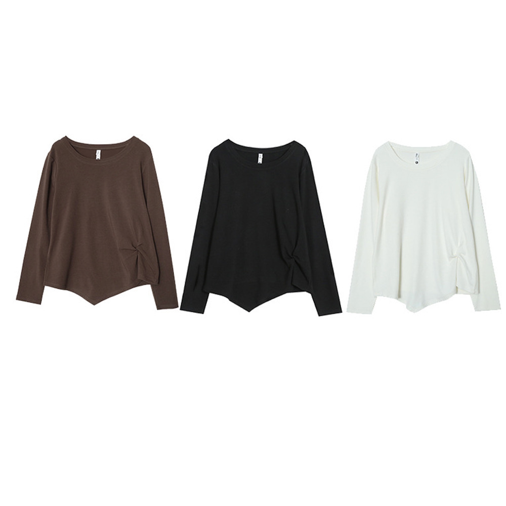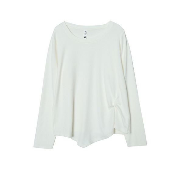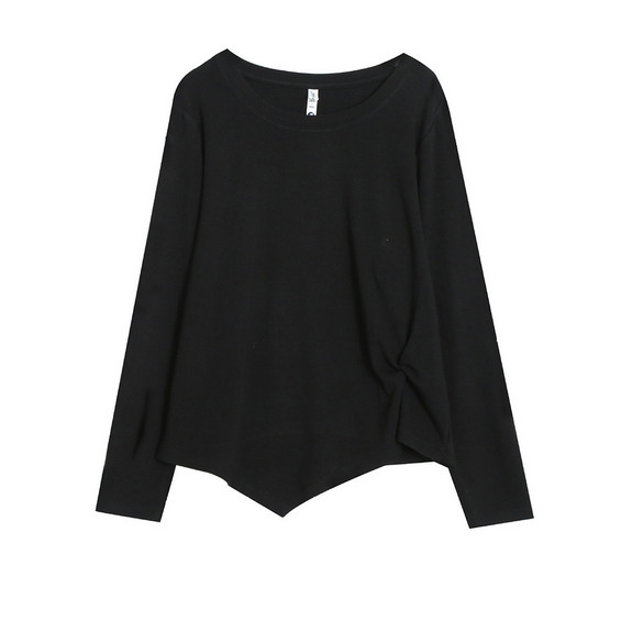 イレギュラーヘムでアシンメトリーツイストデザインの長袖Tシャツ