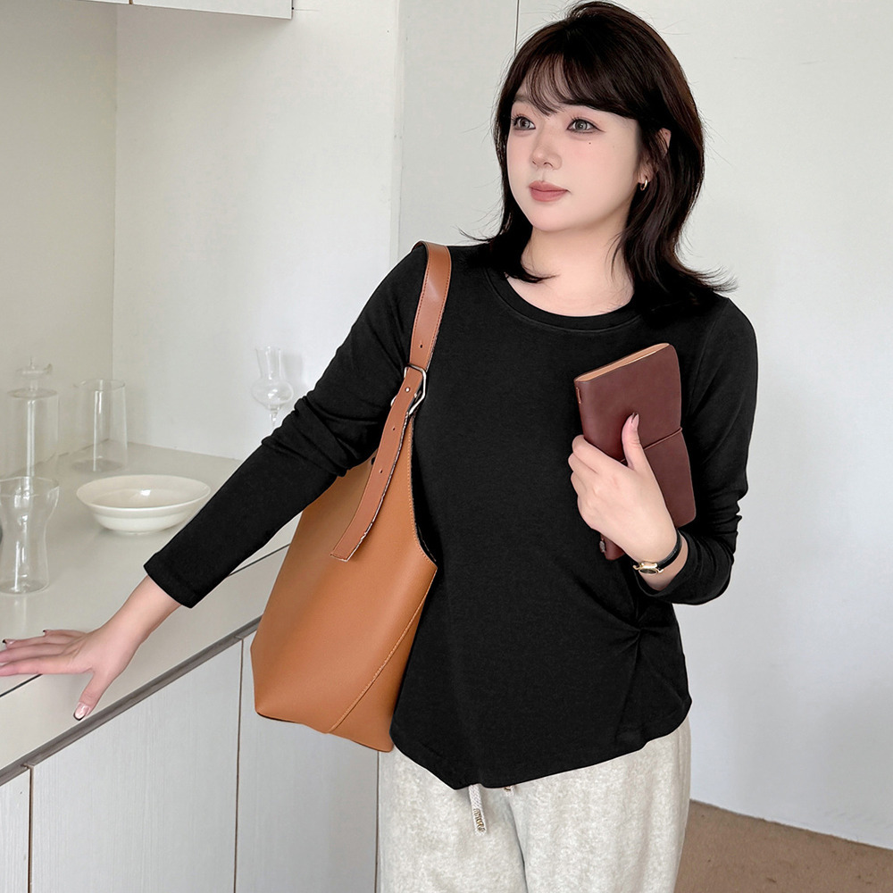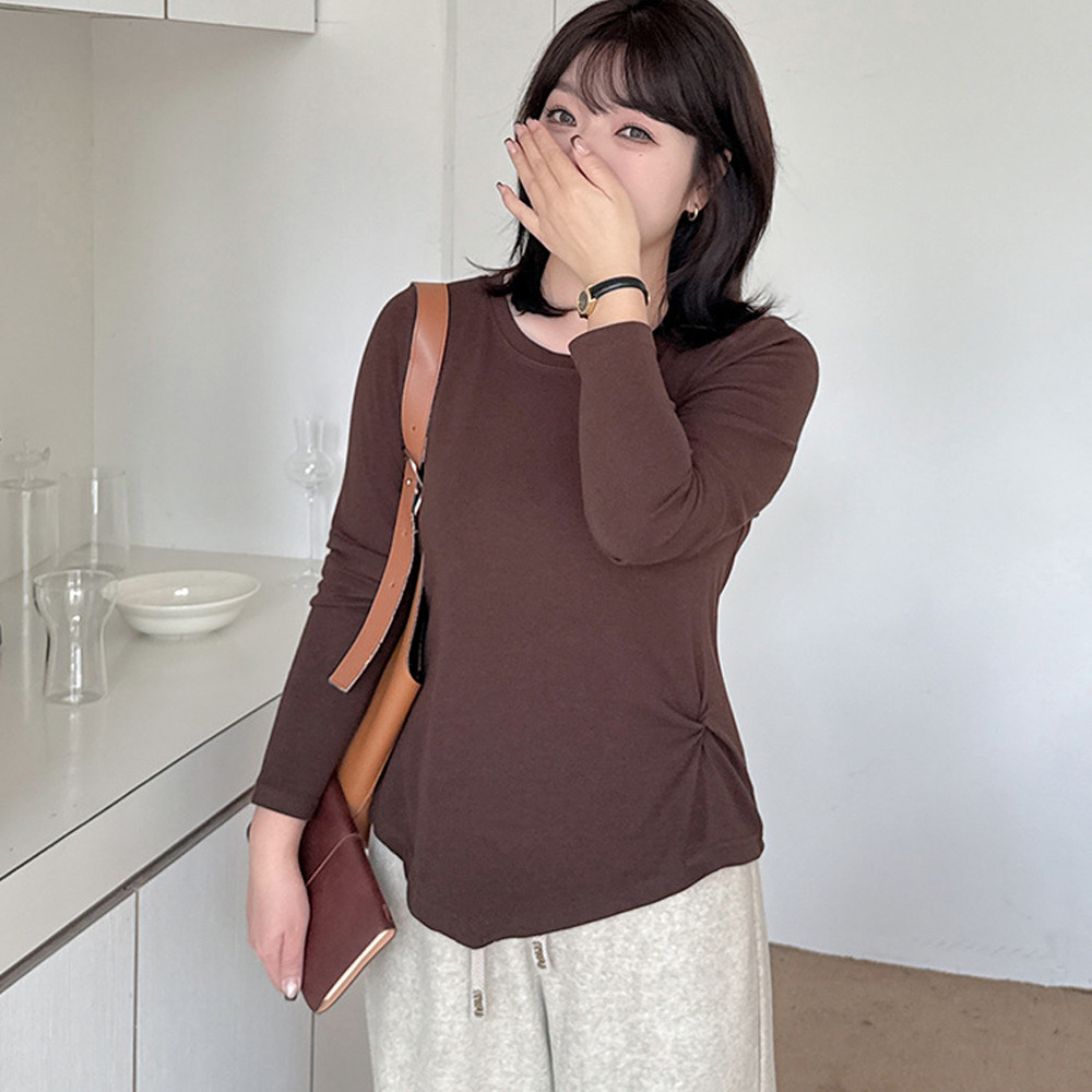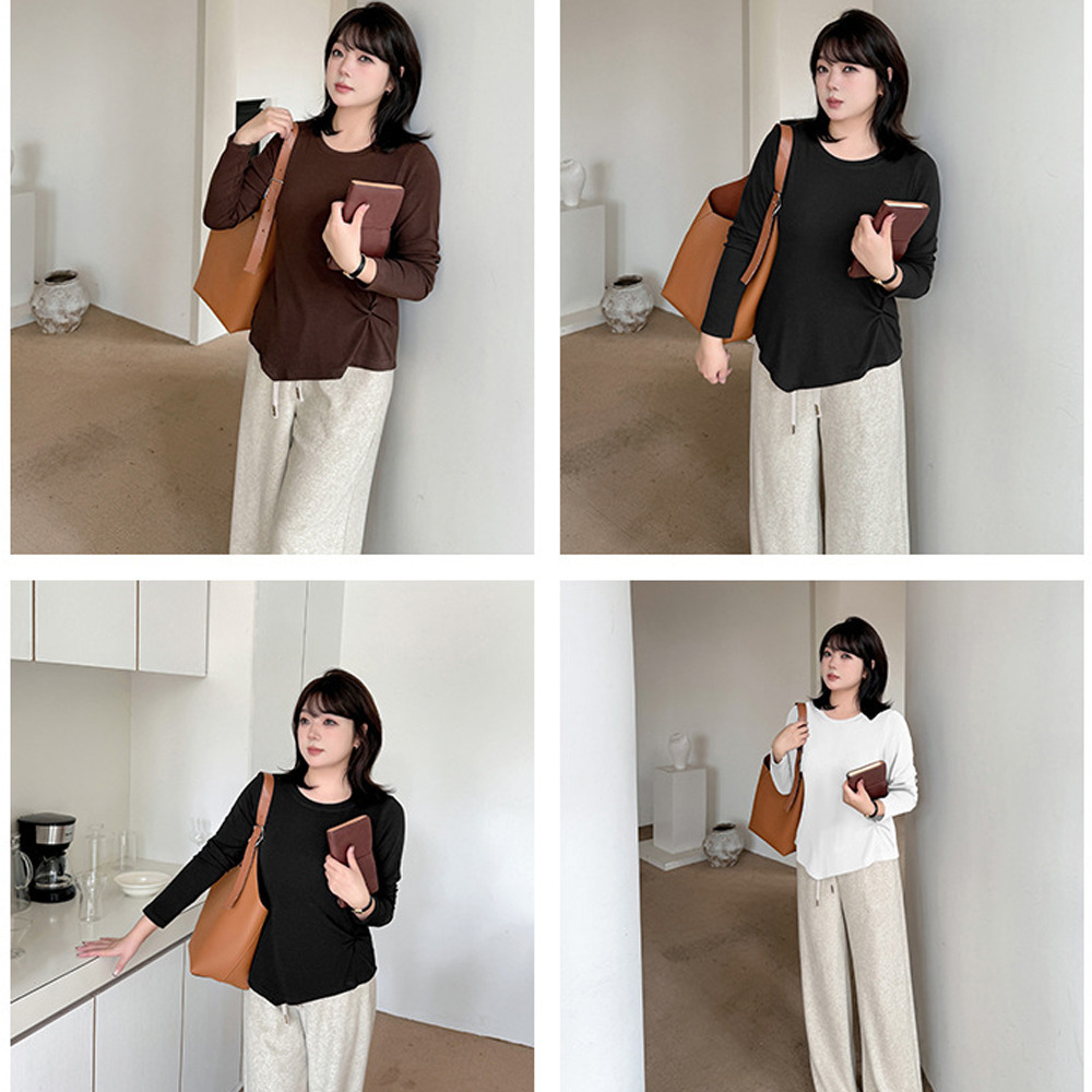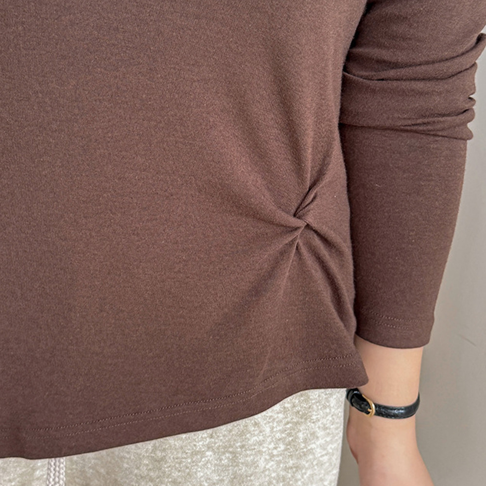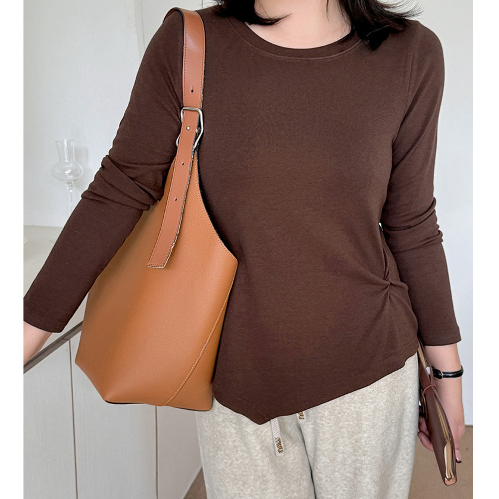 イレギュラーヘムでアシンメトリーツイストデザインの長袖Tシャツ