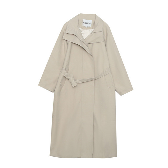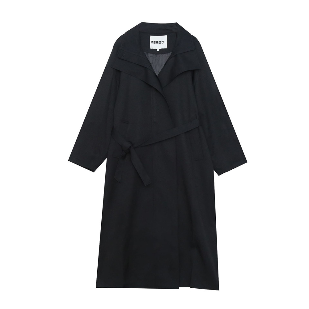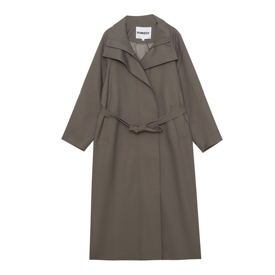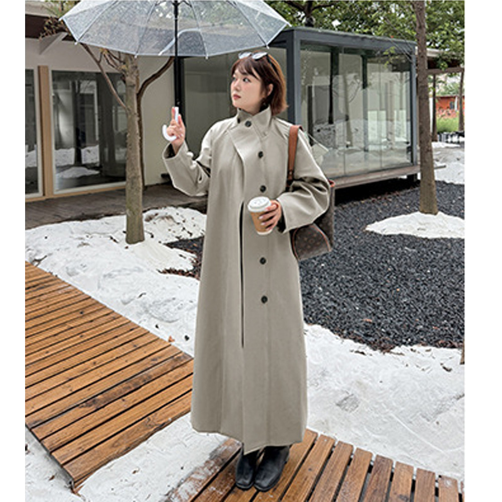 シンプルでスタイリッシュなツイル素材Aラインロングコート