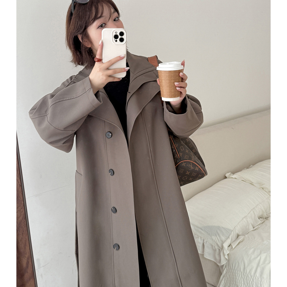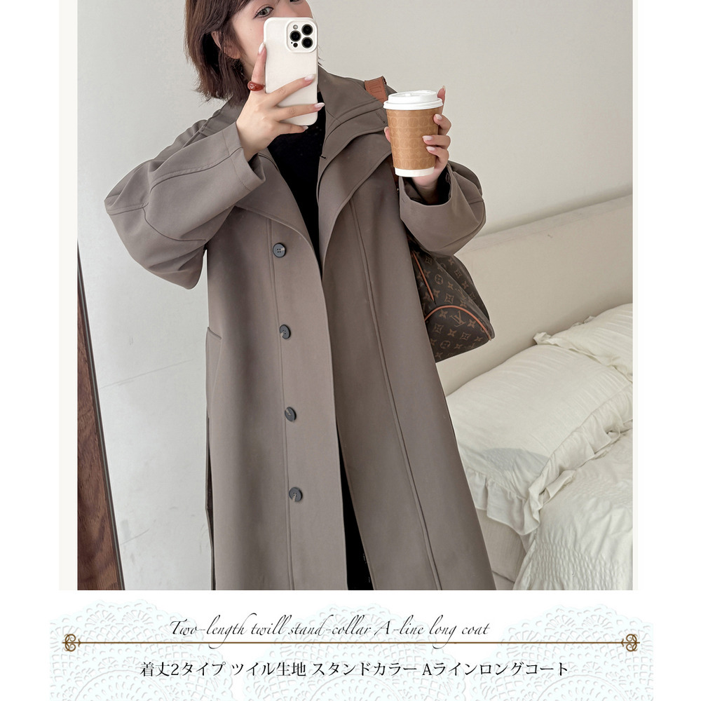 • シンプルでスタイリッシュなツイル素材Aラインロングコート13
