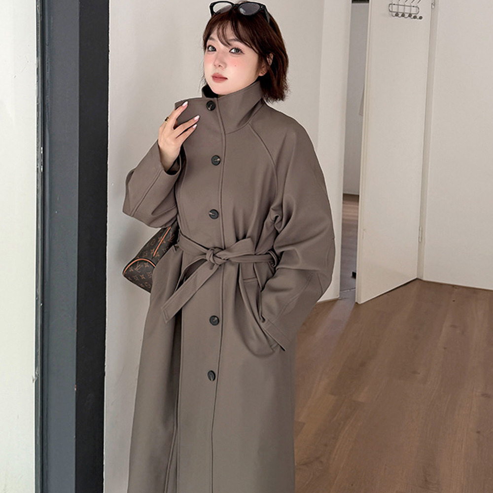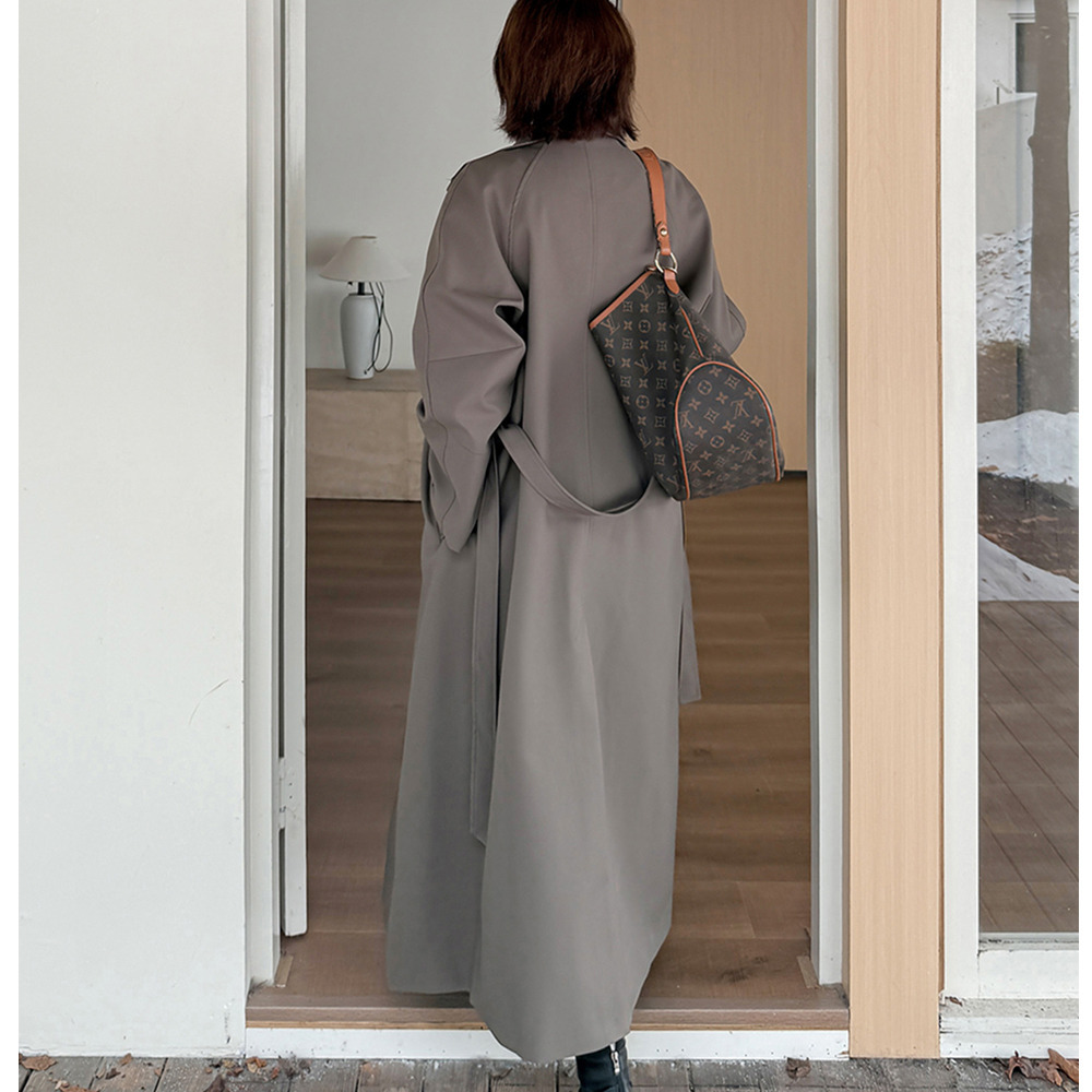 • シンプルでスタイリッシュなツイル素材Aラインロングコート9