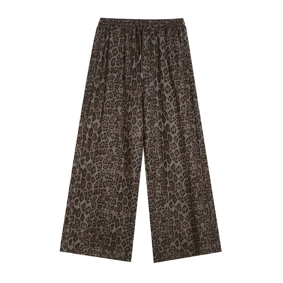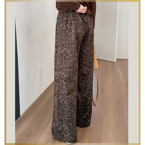 しっとりとしたピーチスキン ヒョウ柄ウエストゴム ワイドパンツ