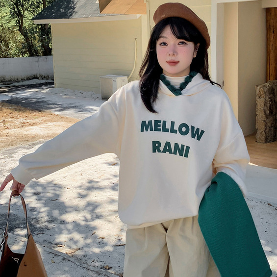 フードの配色ポンポンプリムが大人カワイイオーバーサイズパーカー