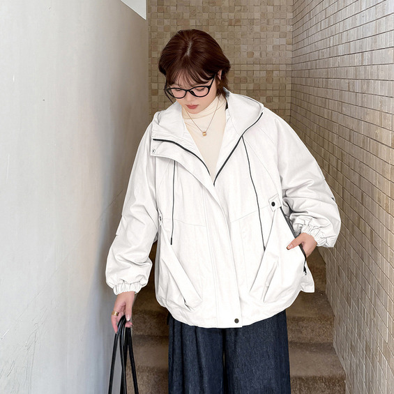 ワークテイストをスタイリッシュに仕上げたフード付きジャケット。