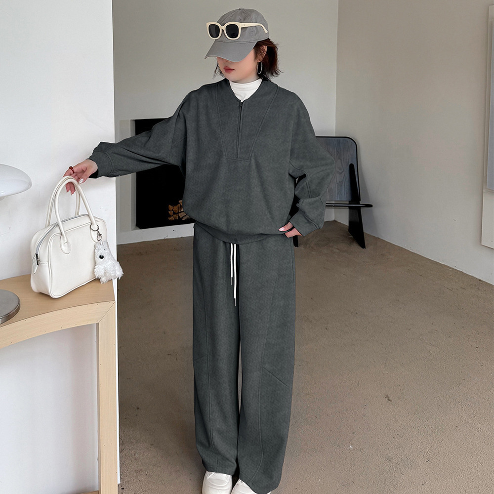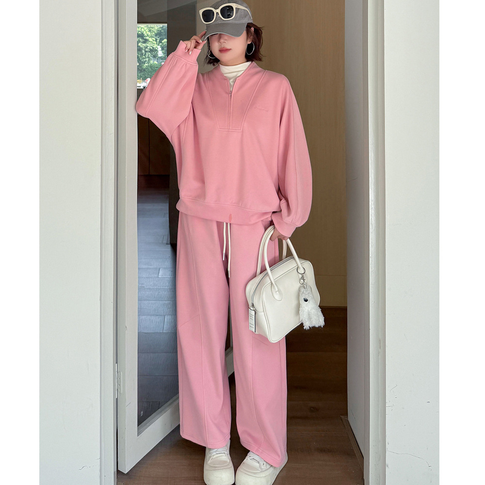 ハーフジップトップスとシミターパンツのスウェットスーツ