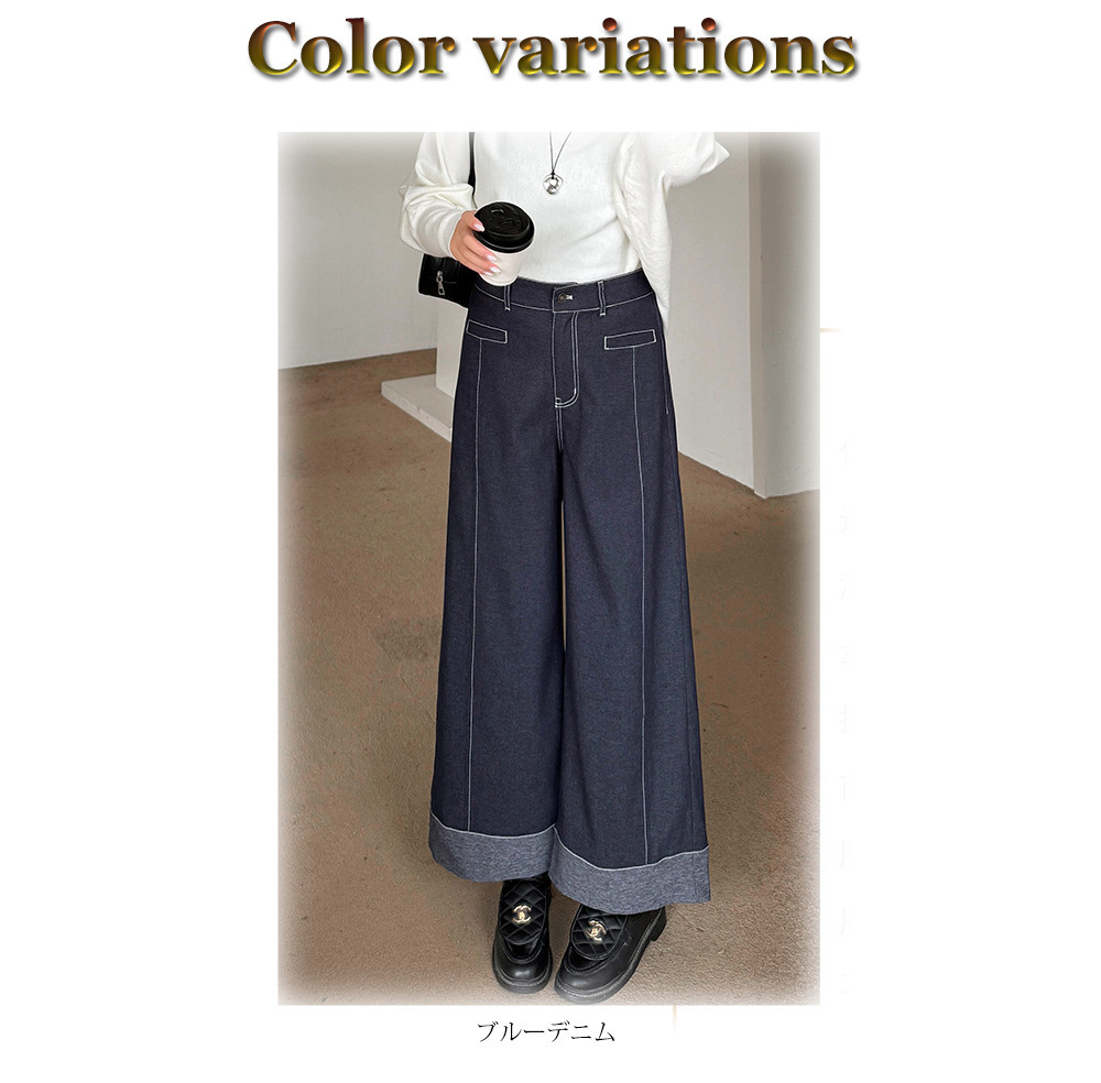 • ホワイトステッチがアクセントになった裾折り返しワイドパンツ1