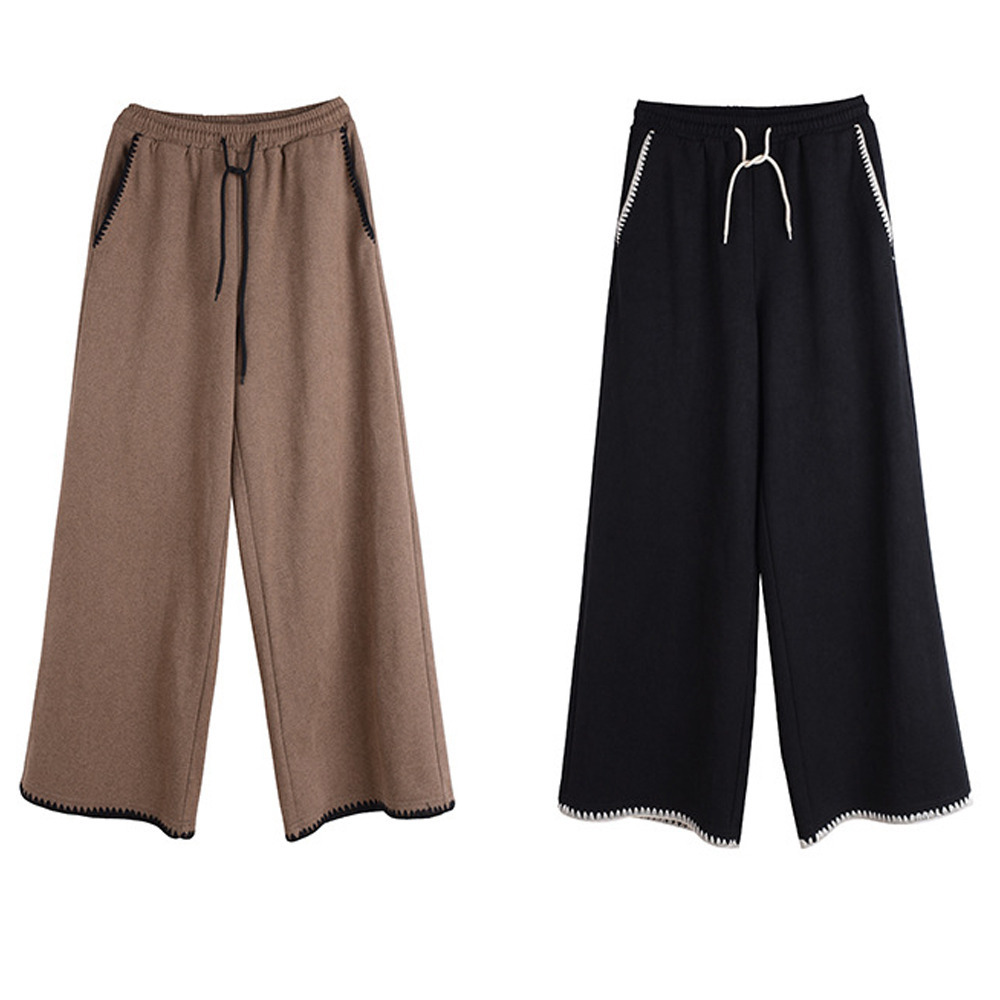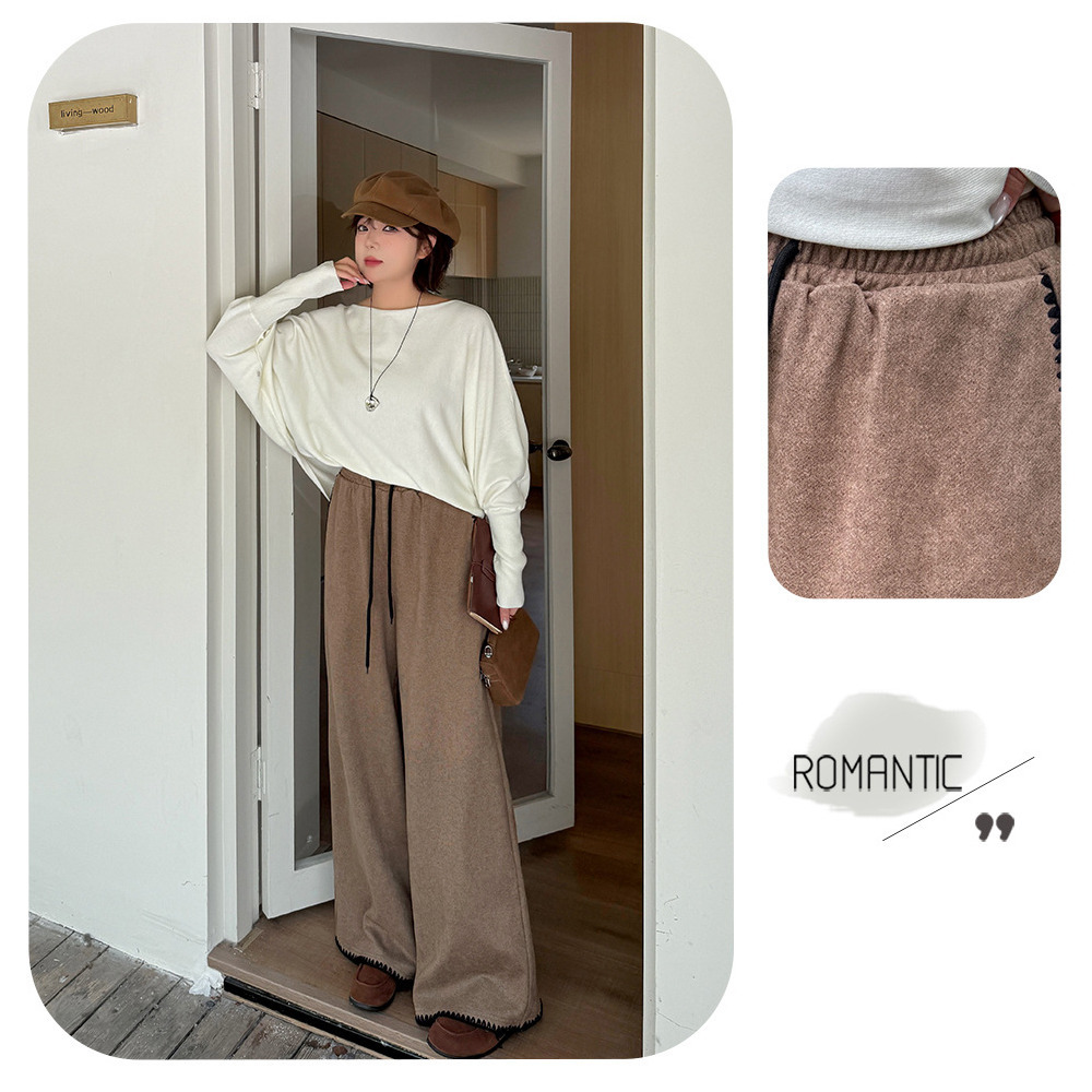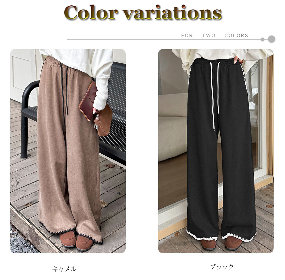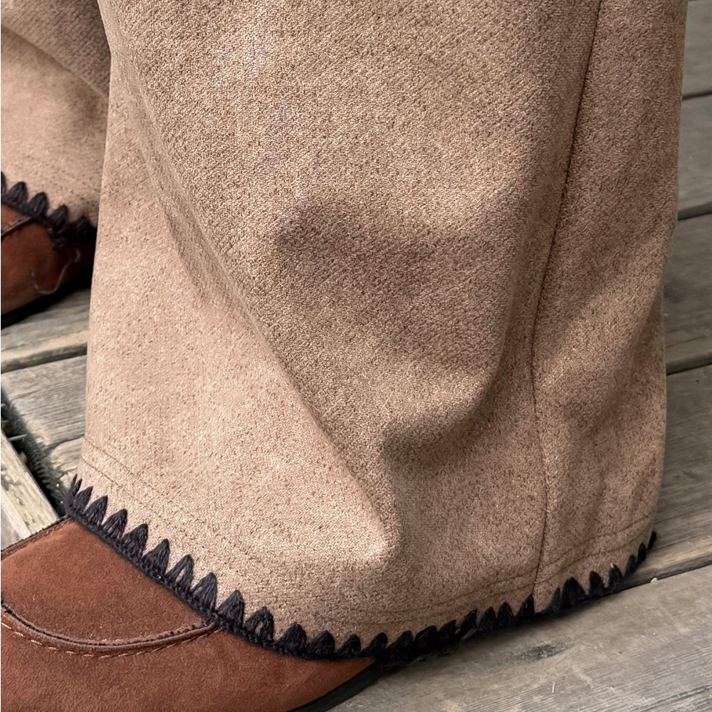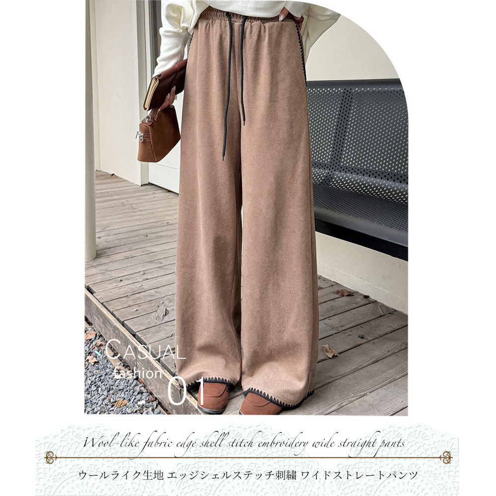 「ウールライク生地 シェルステッチ入り ワイドパンツ」
