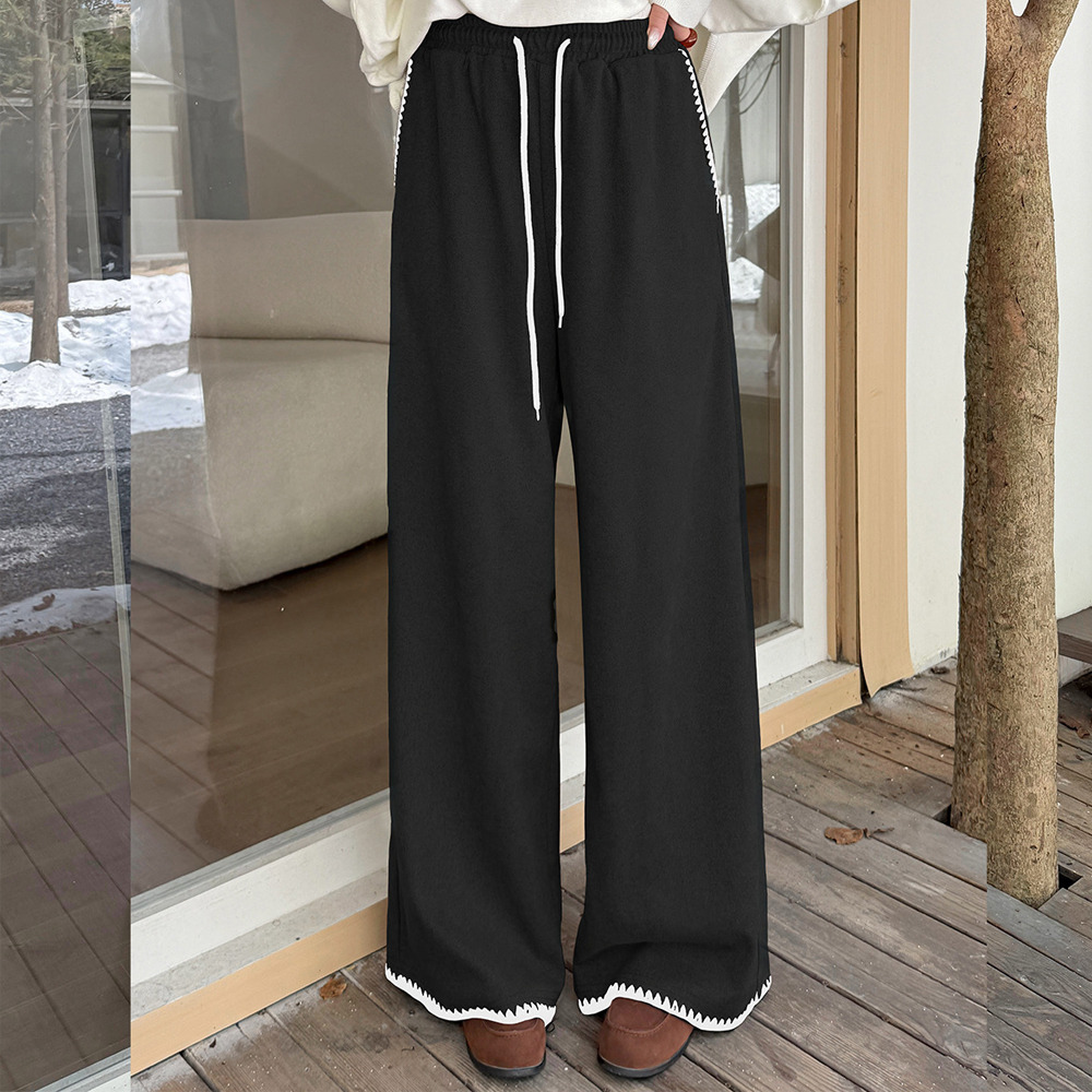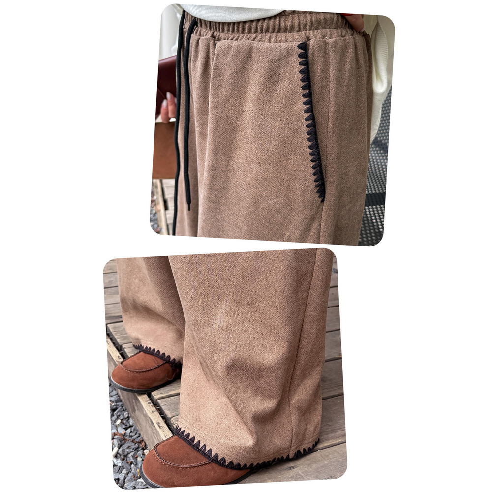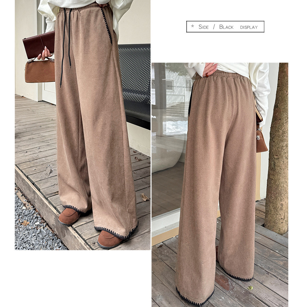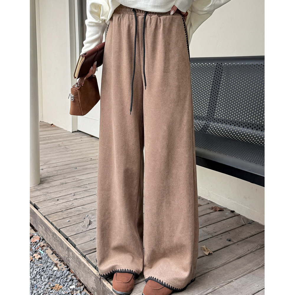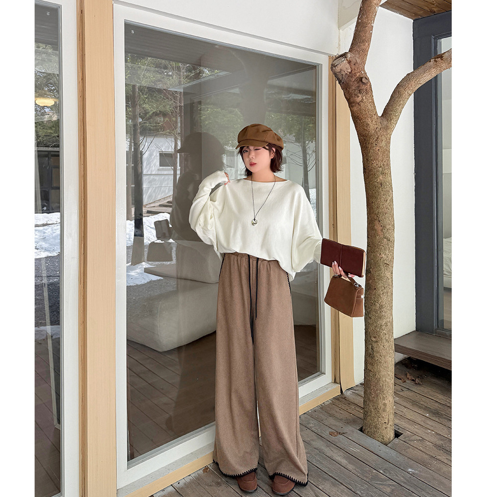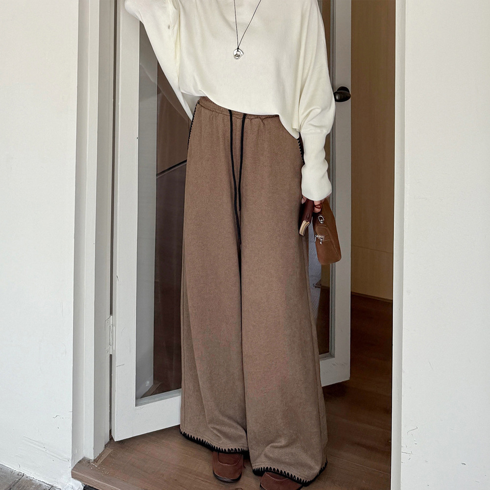 「ウールライク生地 シェルステッチ入り ワイドパンツ」