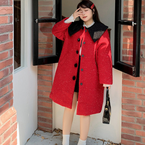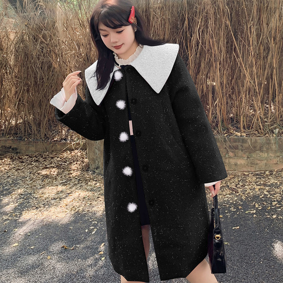 銀糸入ウールライク生地の配色ピーターパンカラーコート