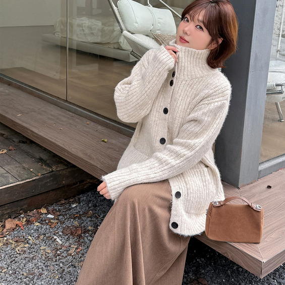 しっかりとした質感で柔らかく暖かなニットカーディガン。