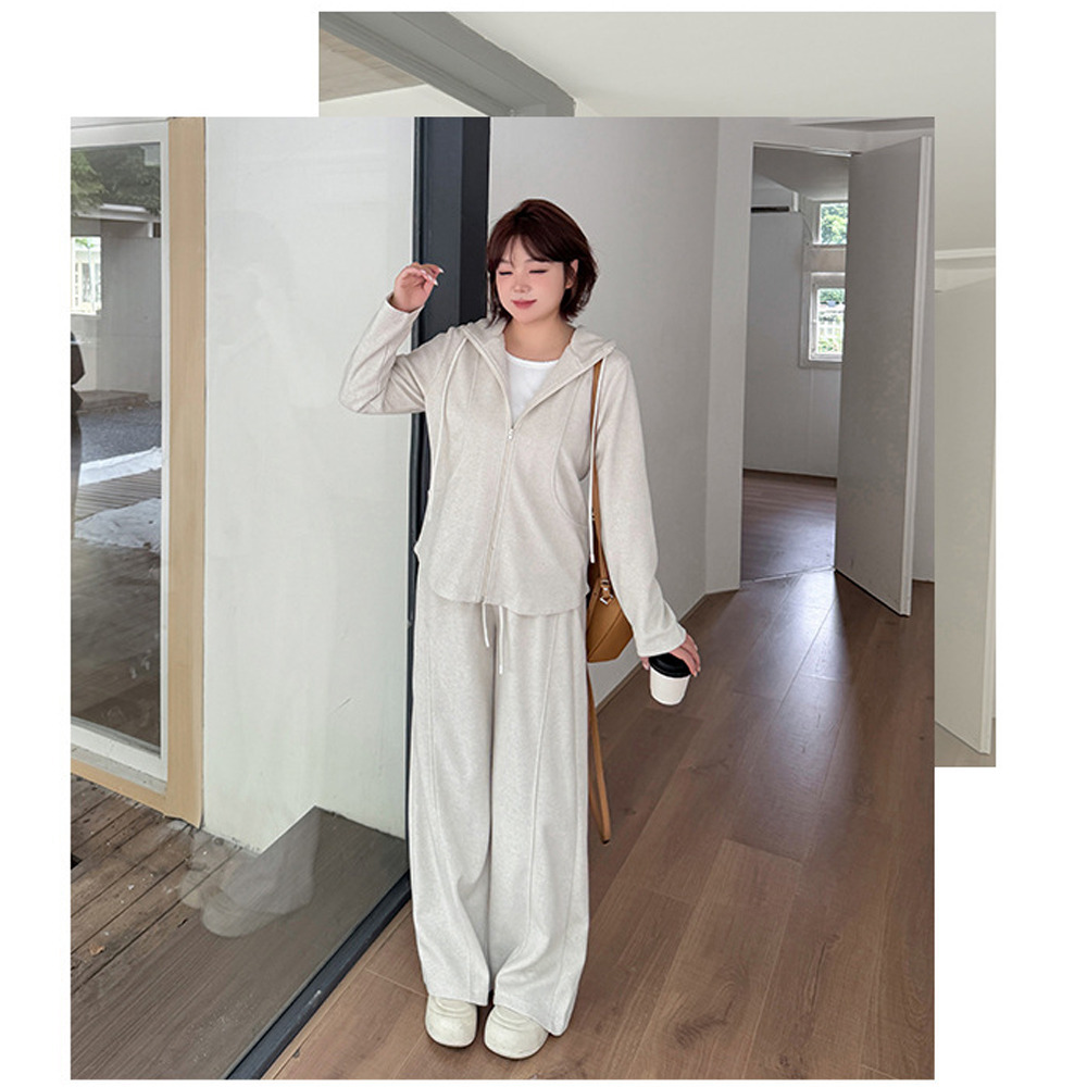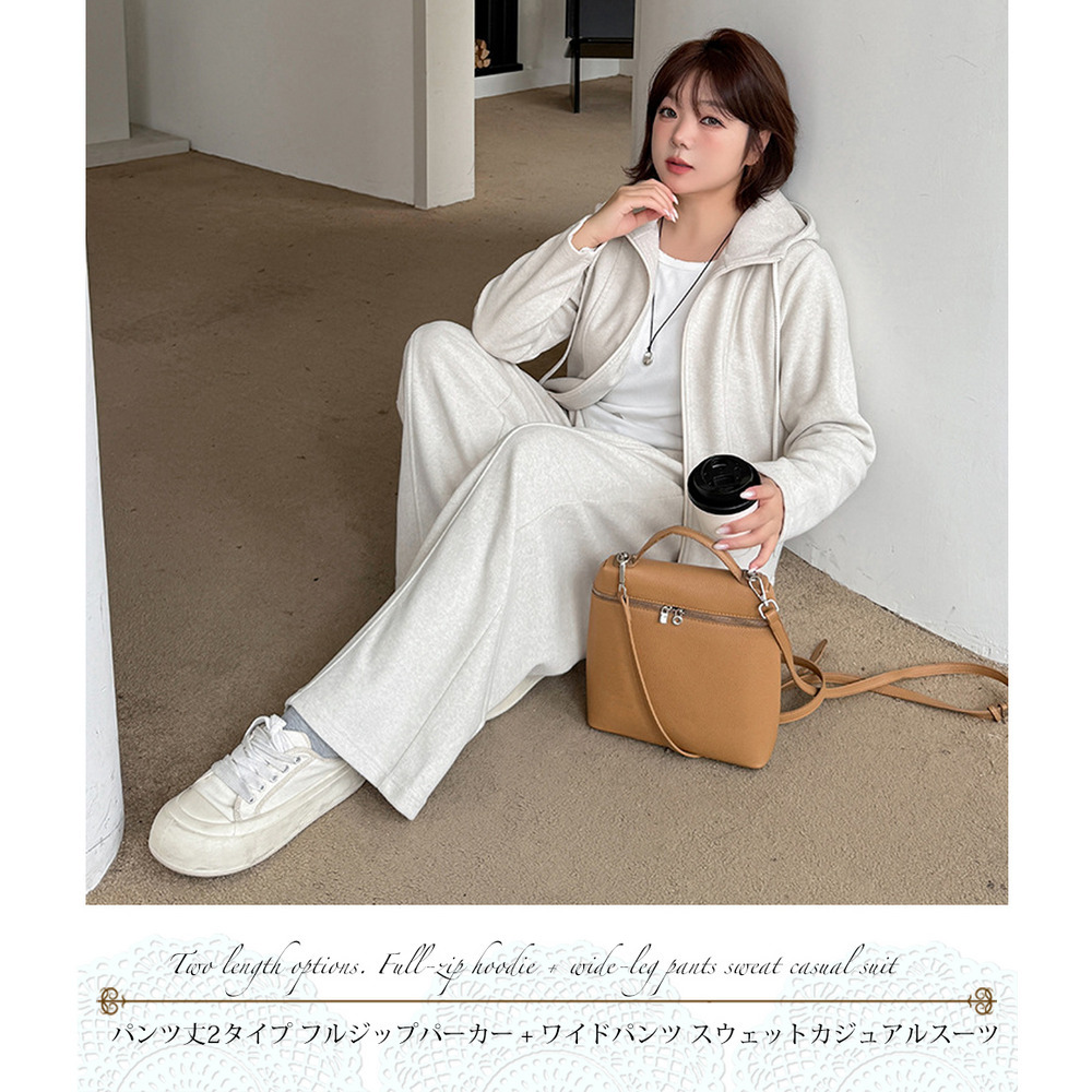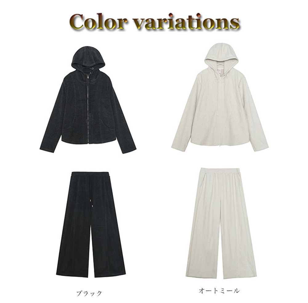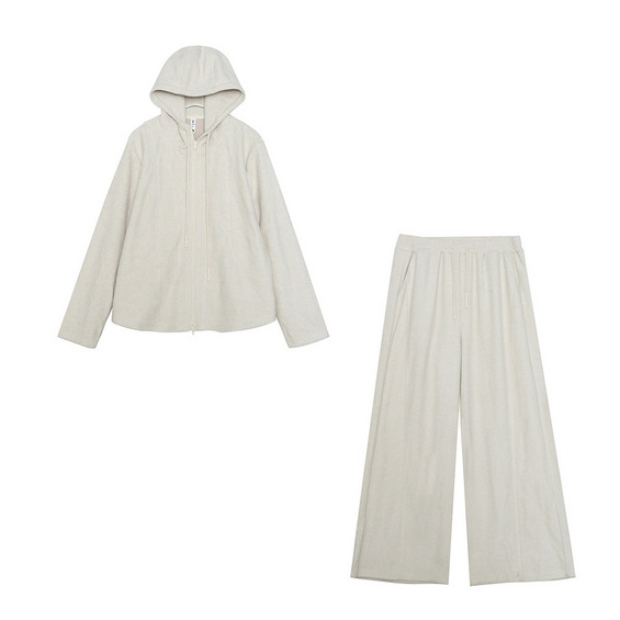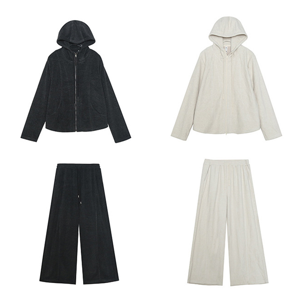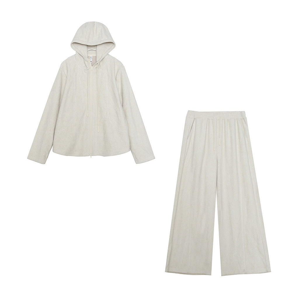 「フルジップパーカー+ワイドパンツ スウェットセットアップ」