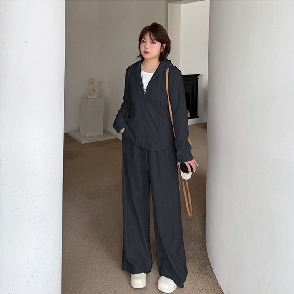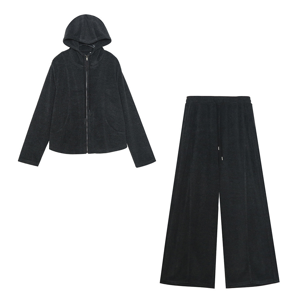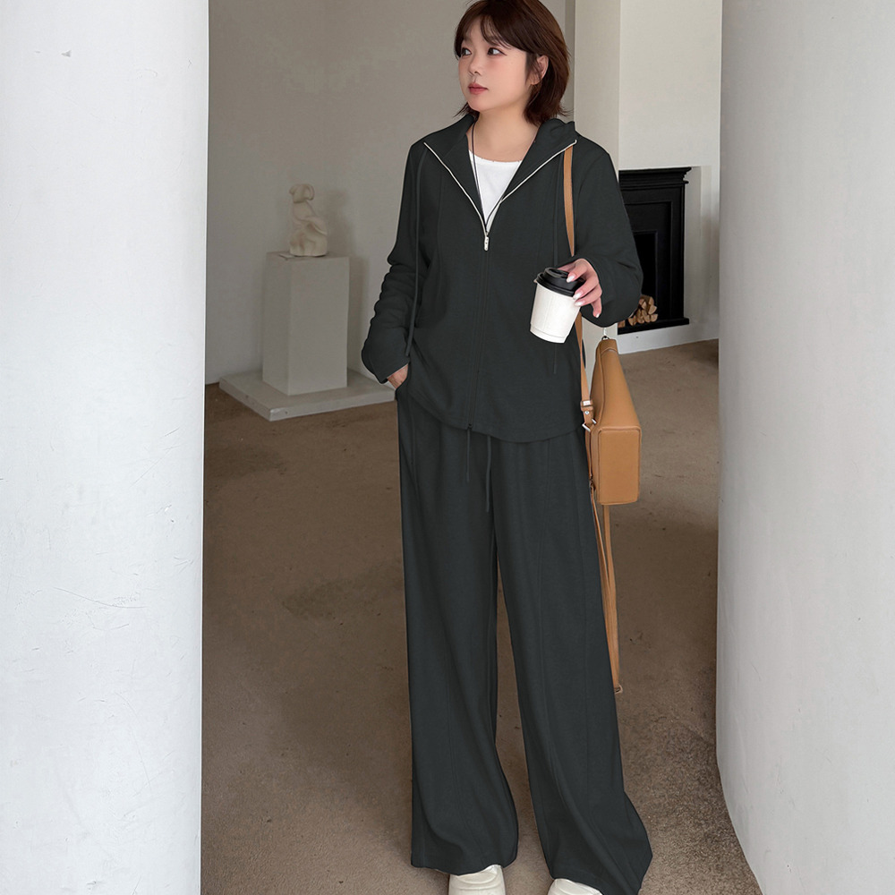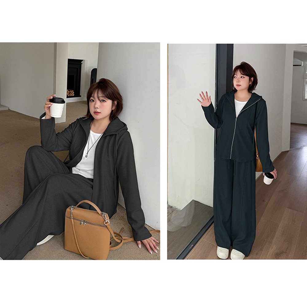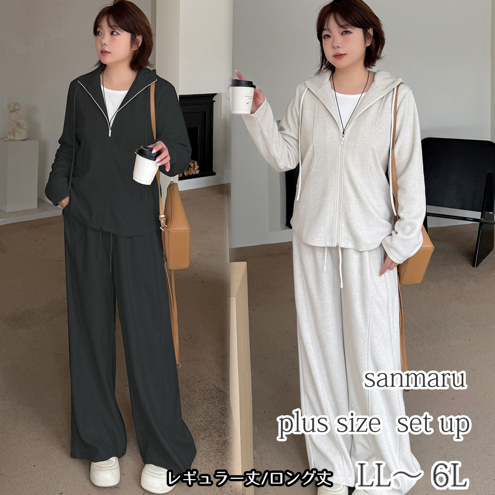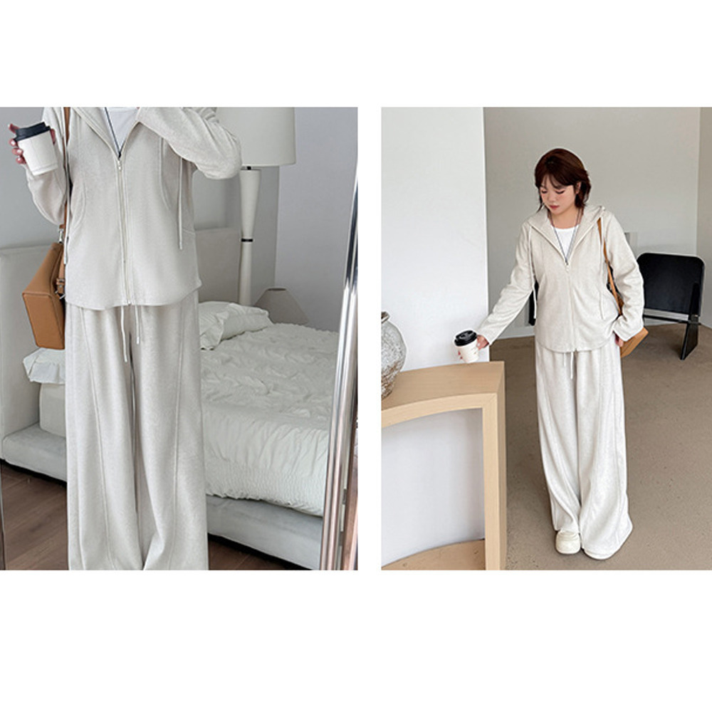 「フルジップパーカー+ワイドパンツ スウェットセットアップ」