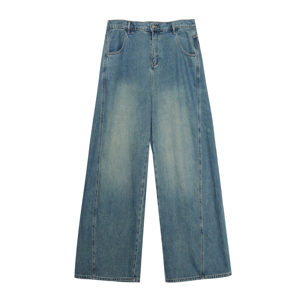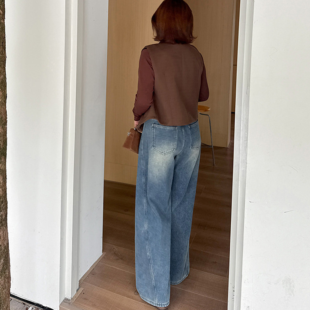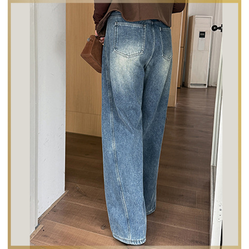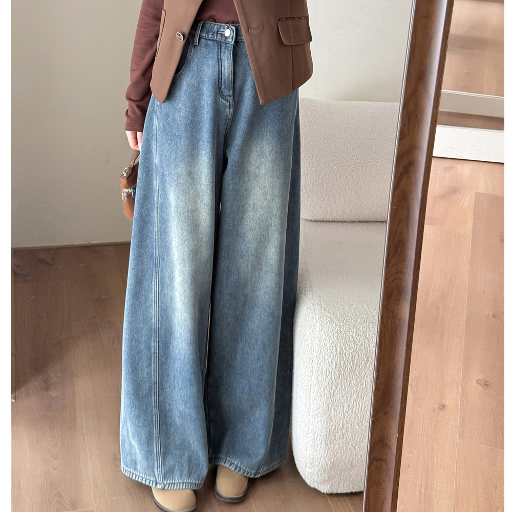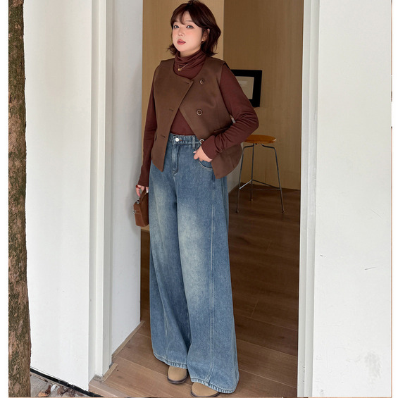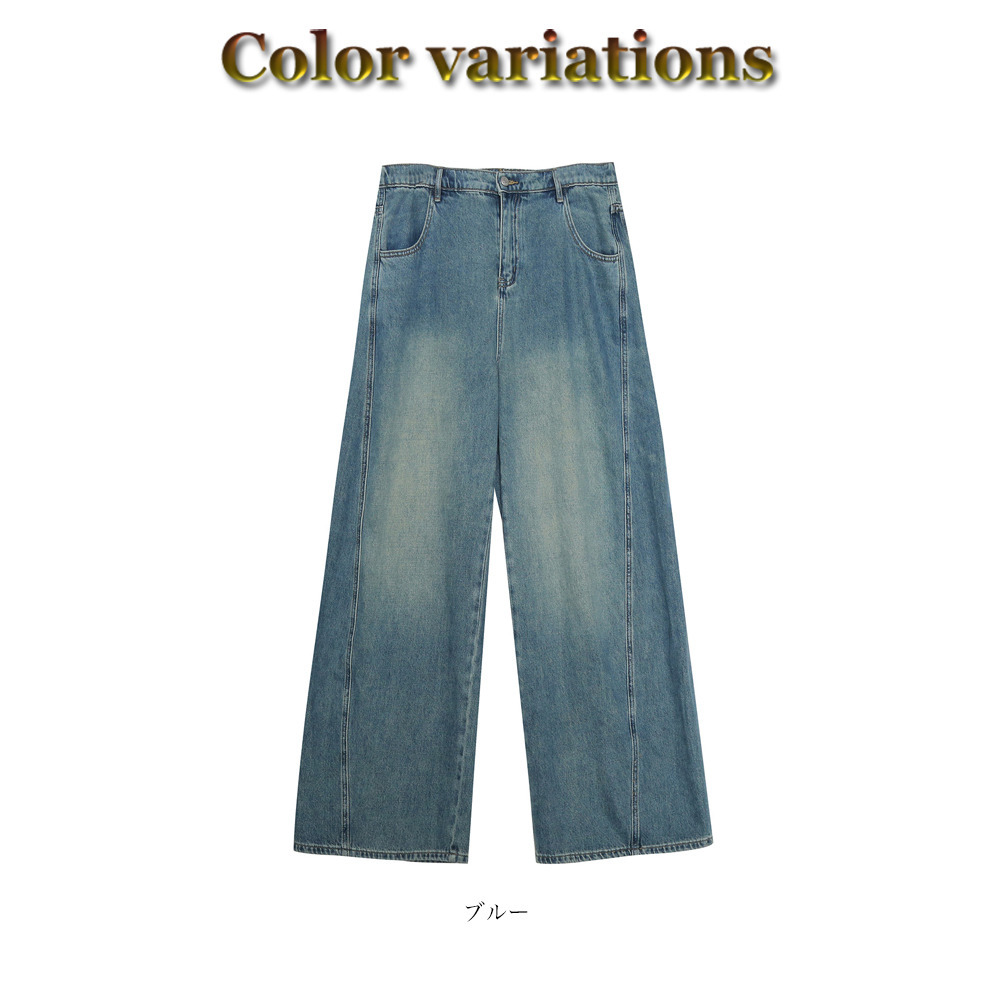 ハイウエストのワイドレッグ デニムカーブパンツ。