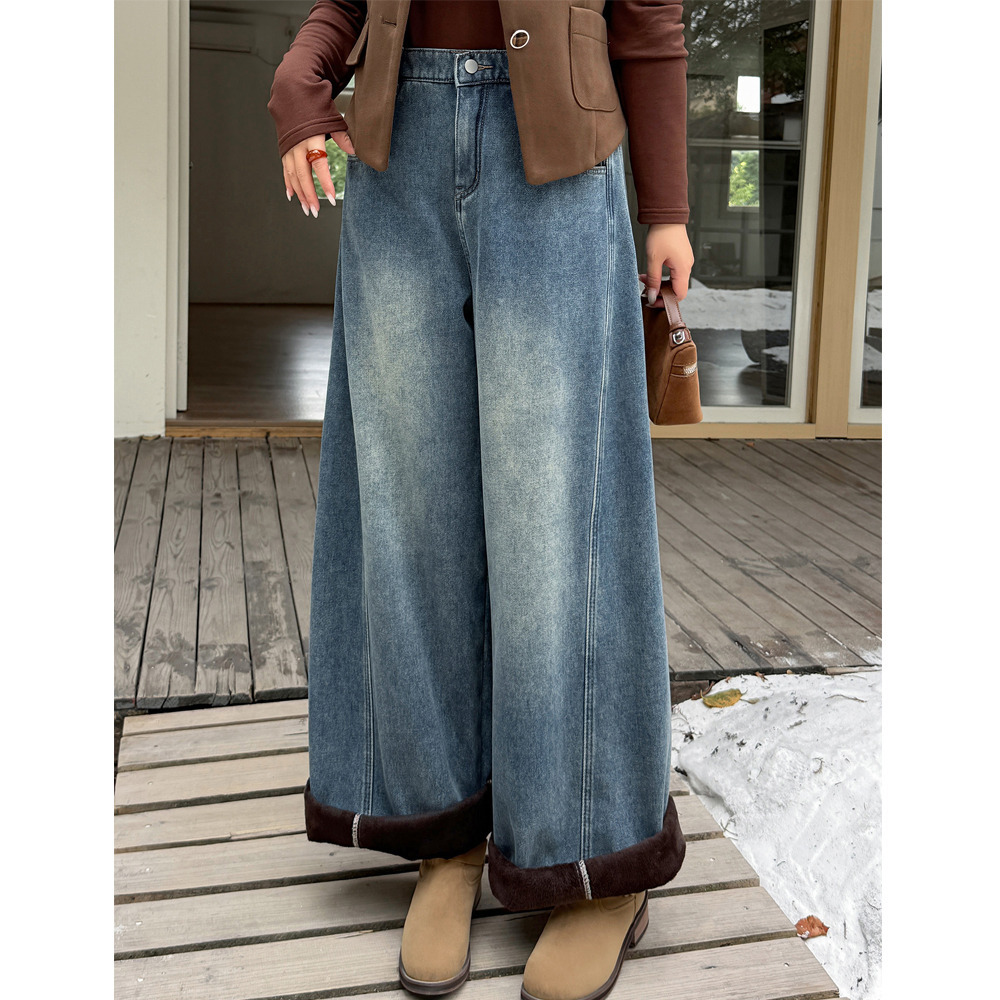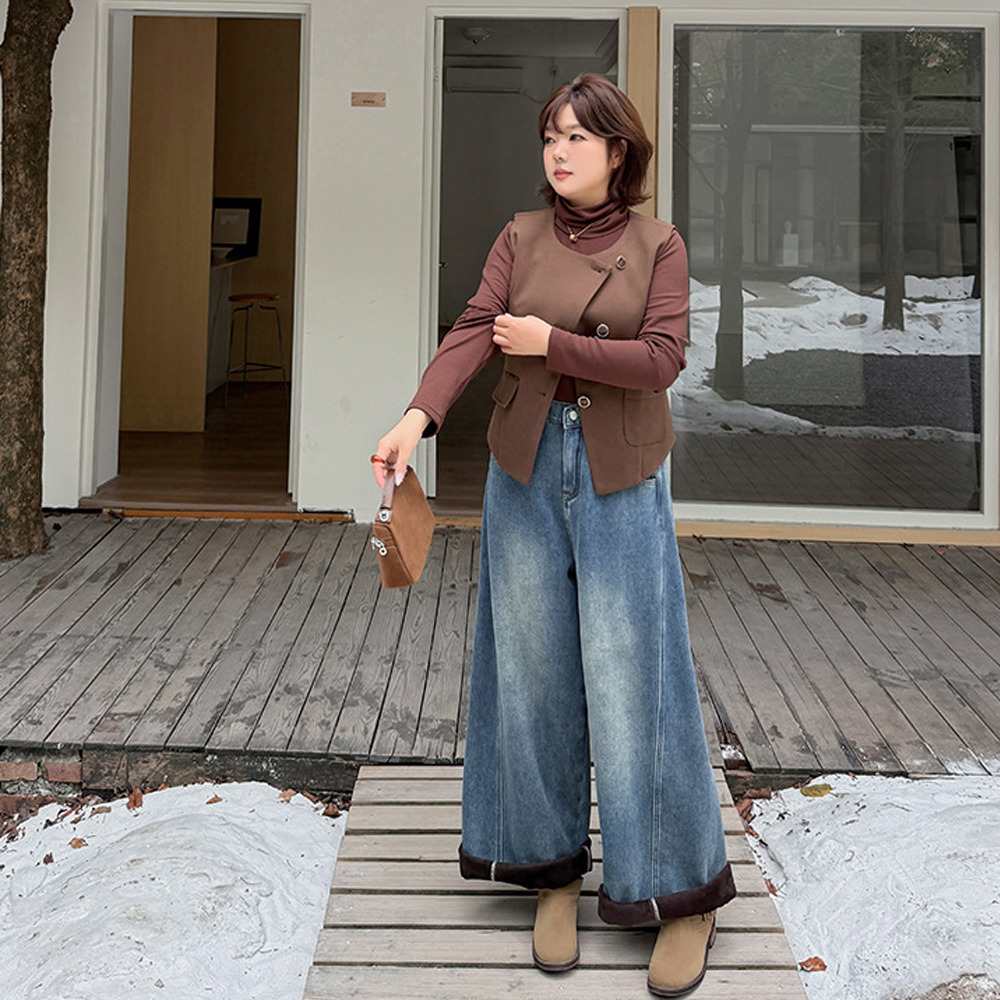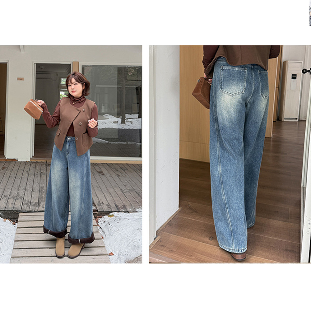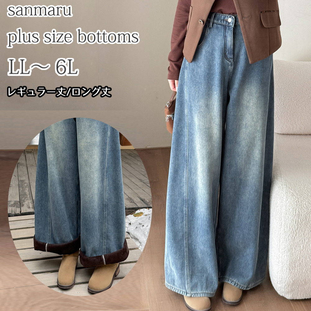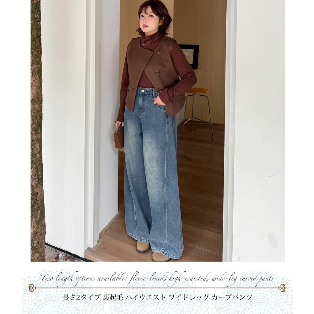 長さ6cm違いの2タイプ 裏フリースで暖か!デニムカーブパンツ