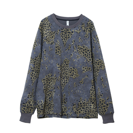 「イレギュラー レオパード柄 長袖プルオーバー」