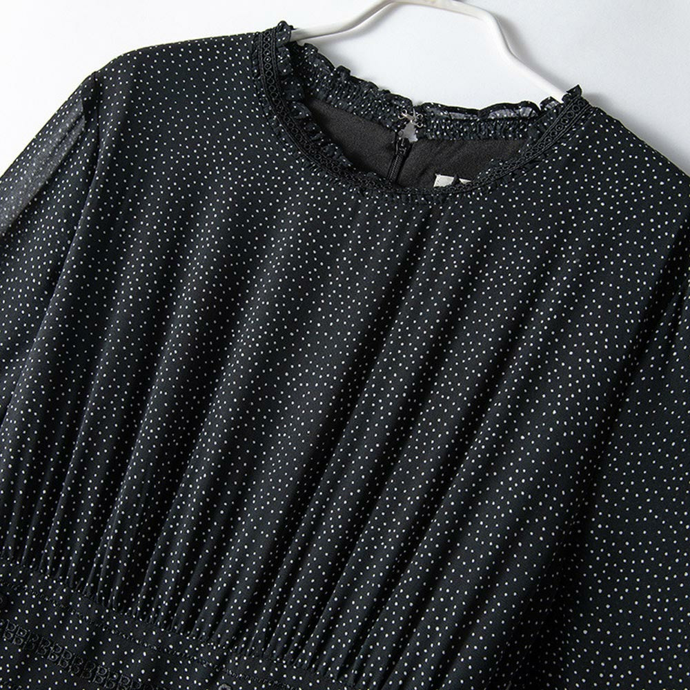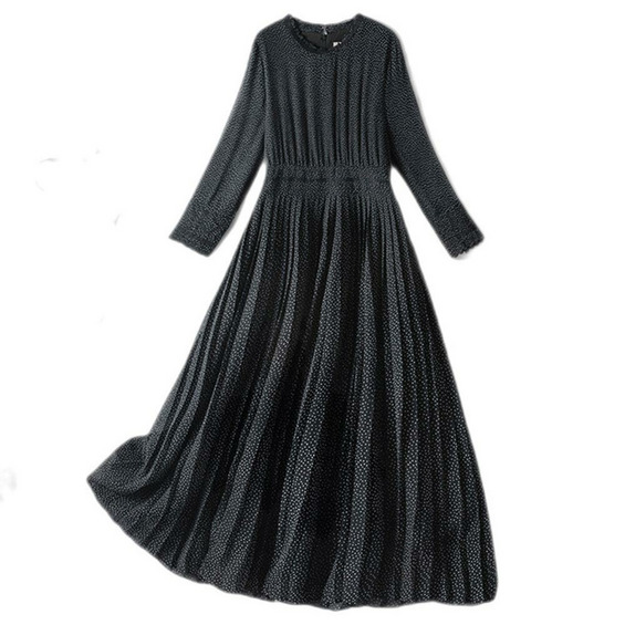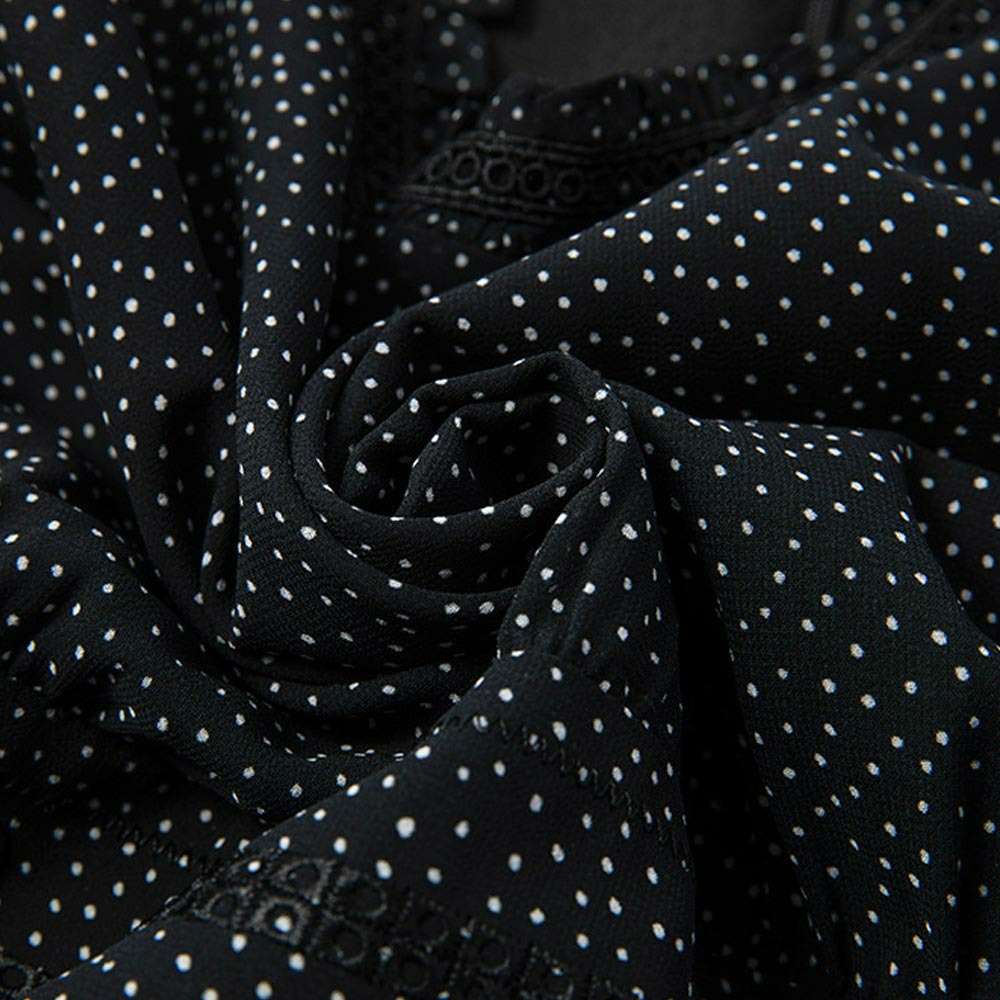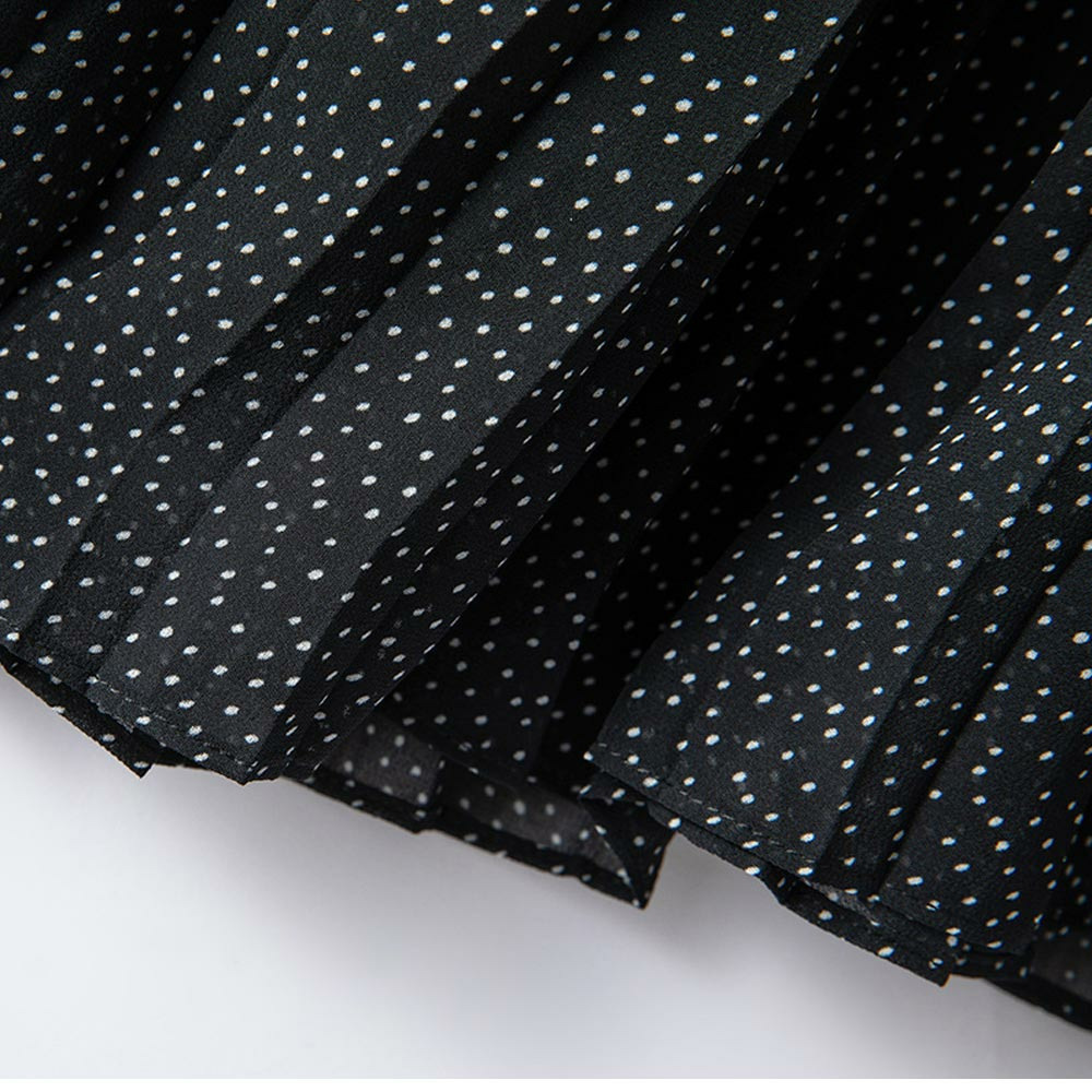 小さなドットプリントのシフォンワンピース。