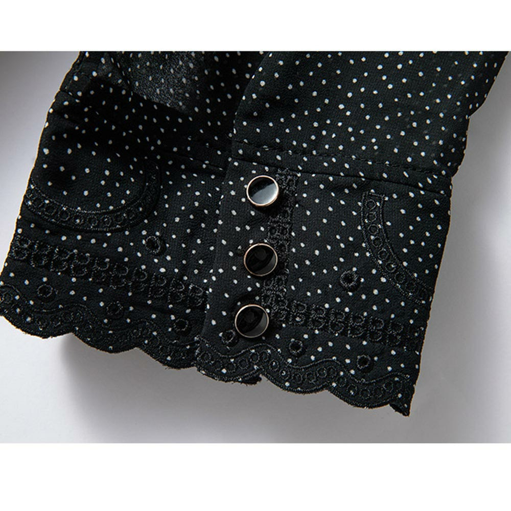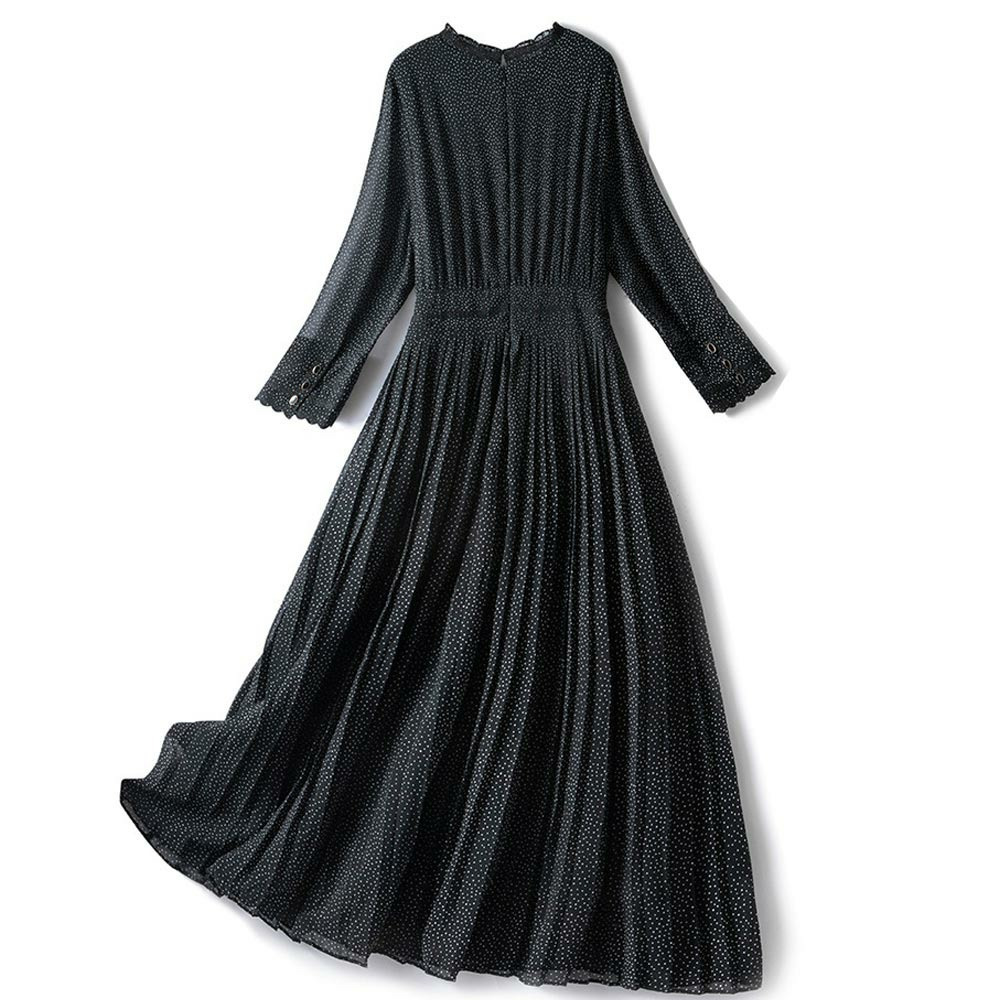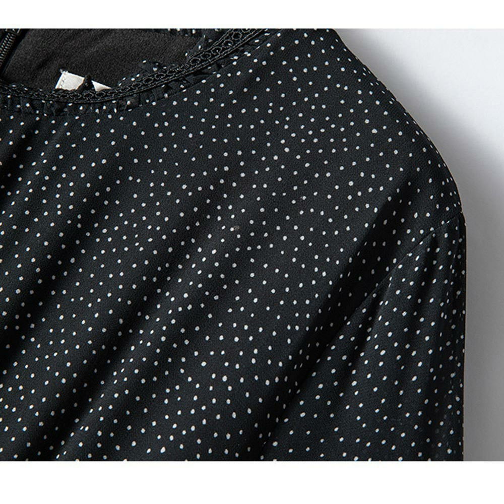小さなドットプリントのシフォンワンピース。