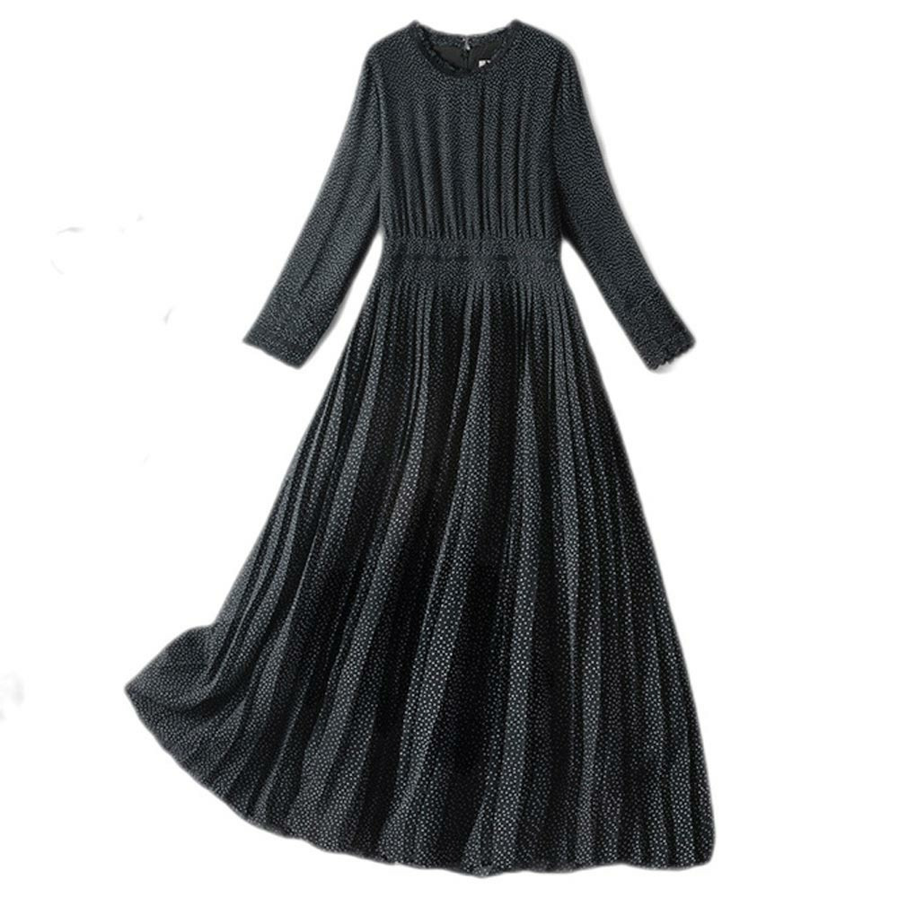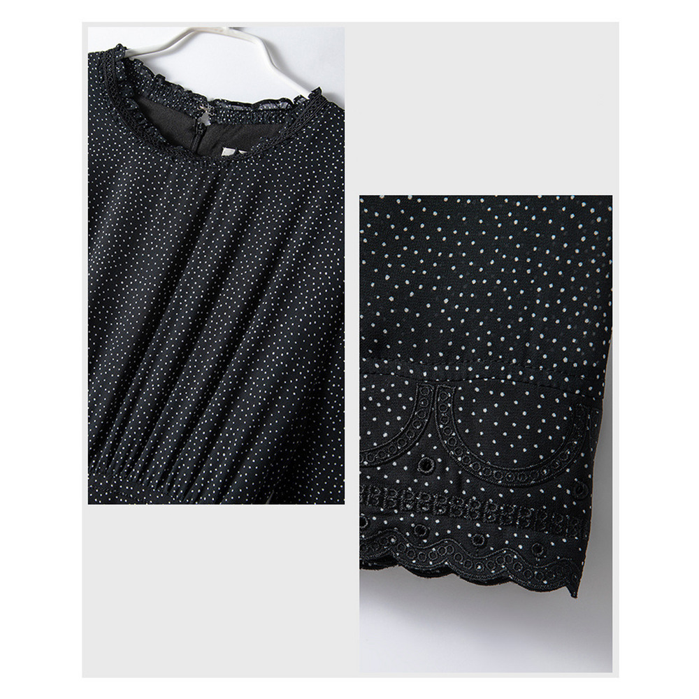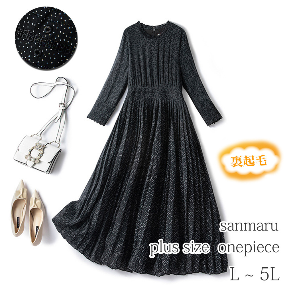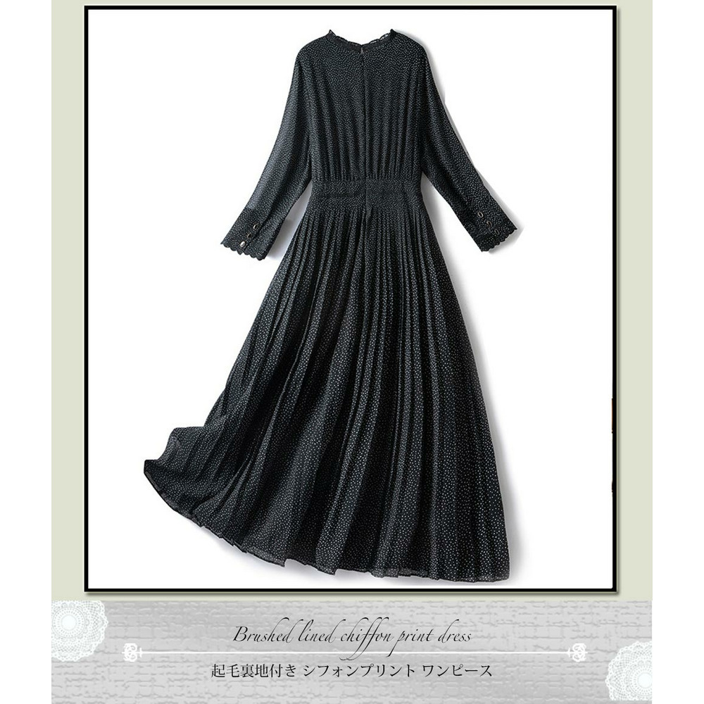起毛裏地付きで暖か!刺繍入りドットプリント シフォンワンピース