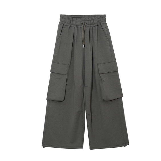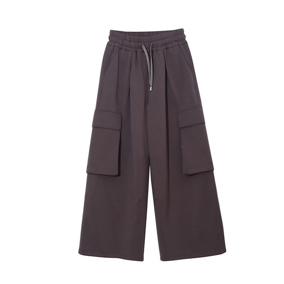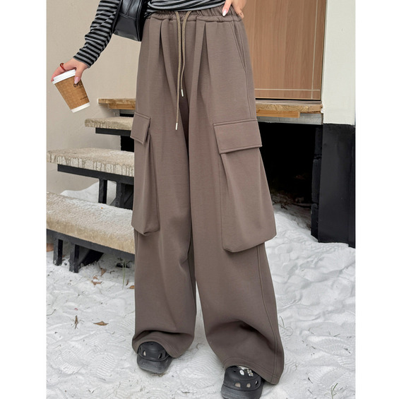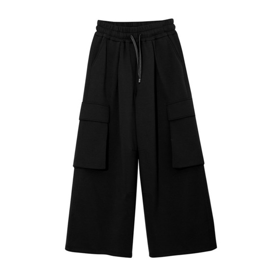 長さ6m違いの2タイプ 裏起毛のワイドレッグ ウエストゴム カーゴパンツ