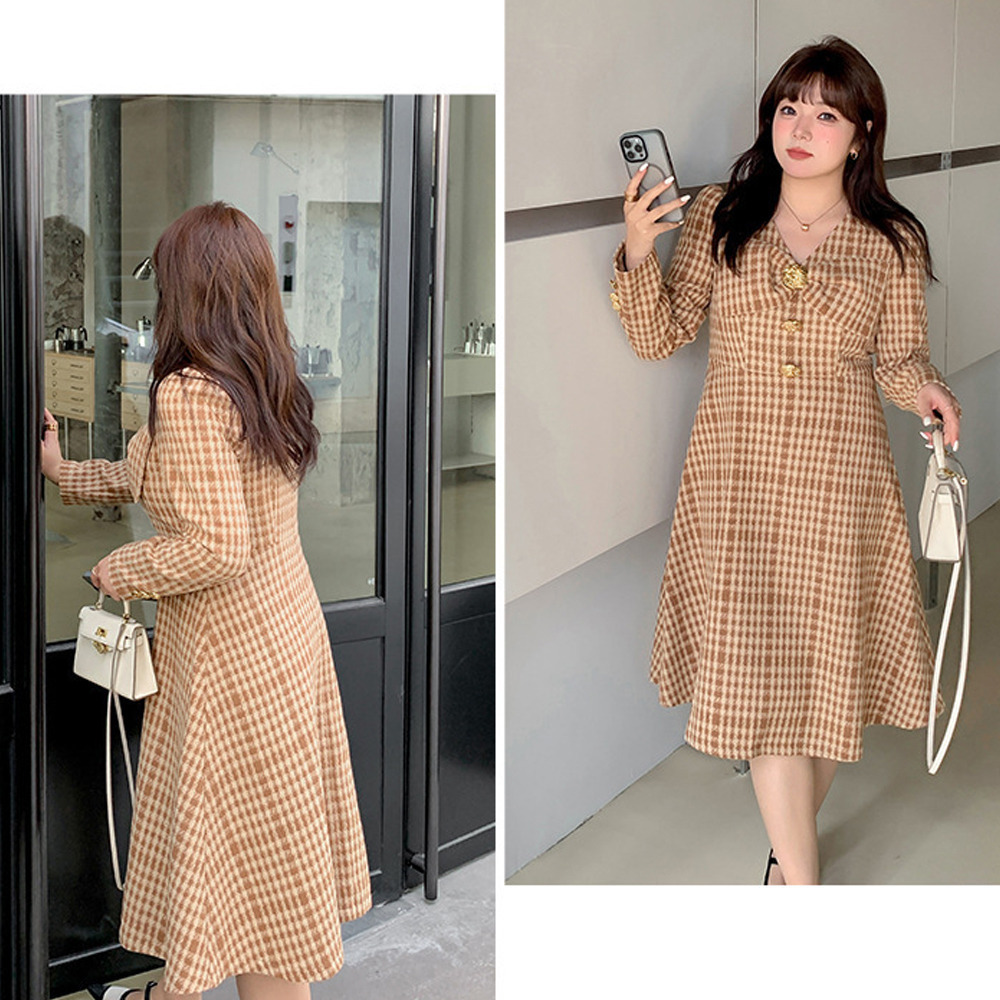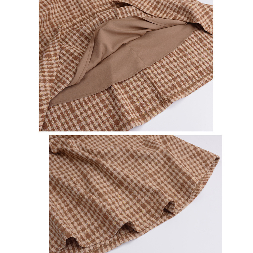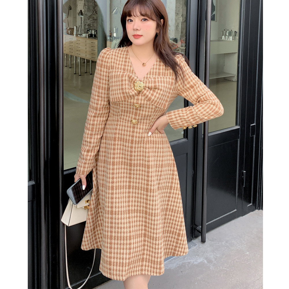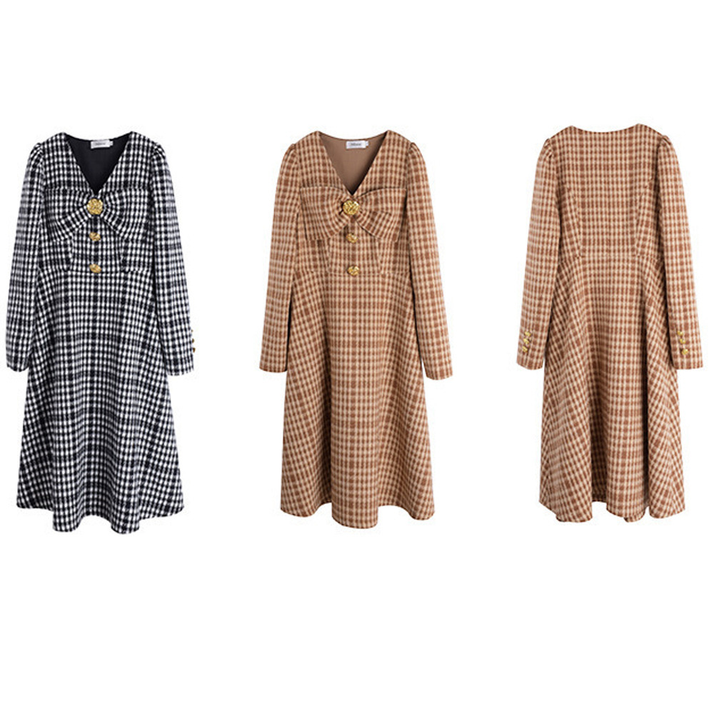 チェック柄の暖かなウールライク生地フレアワンピース。