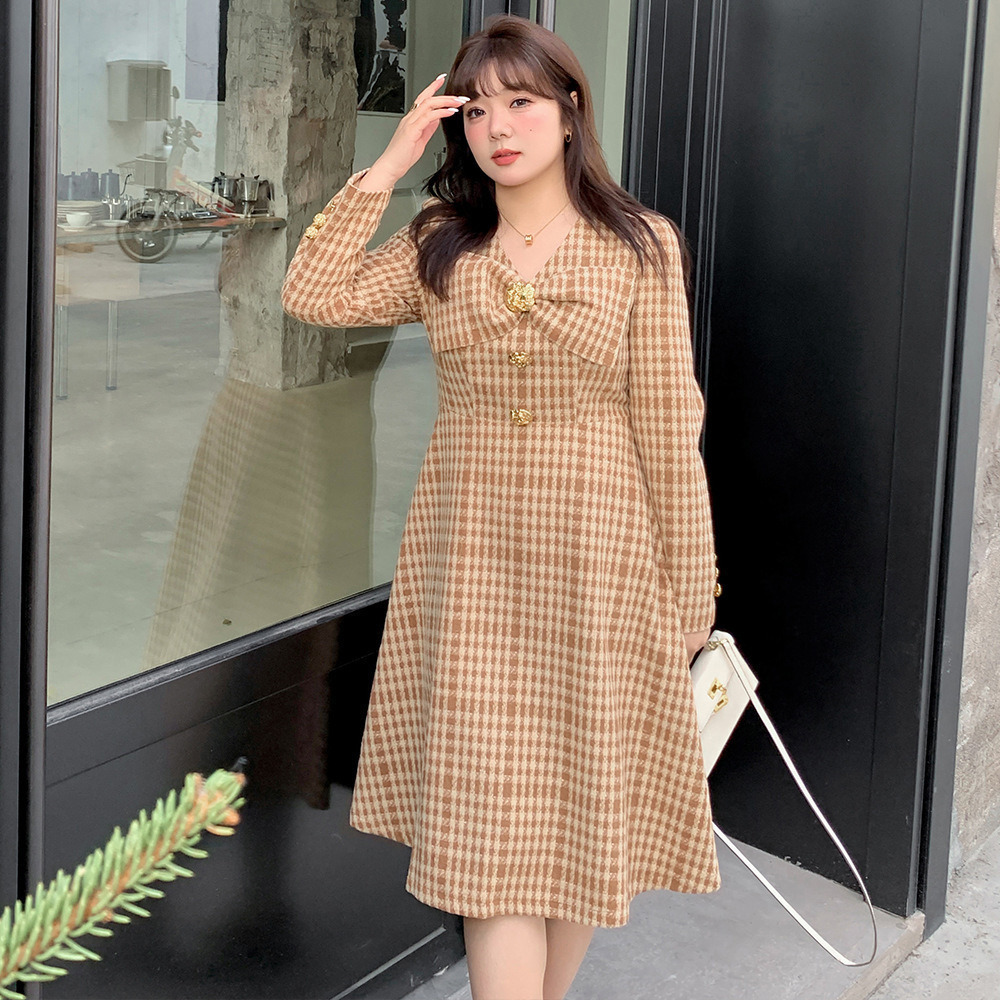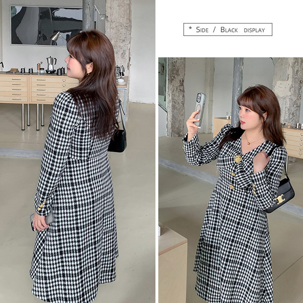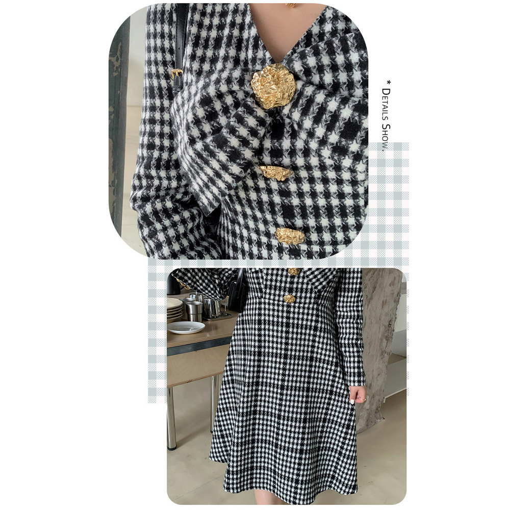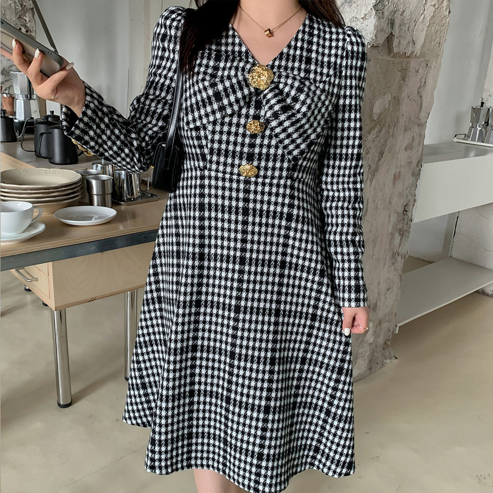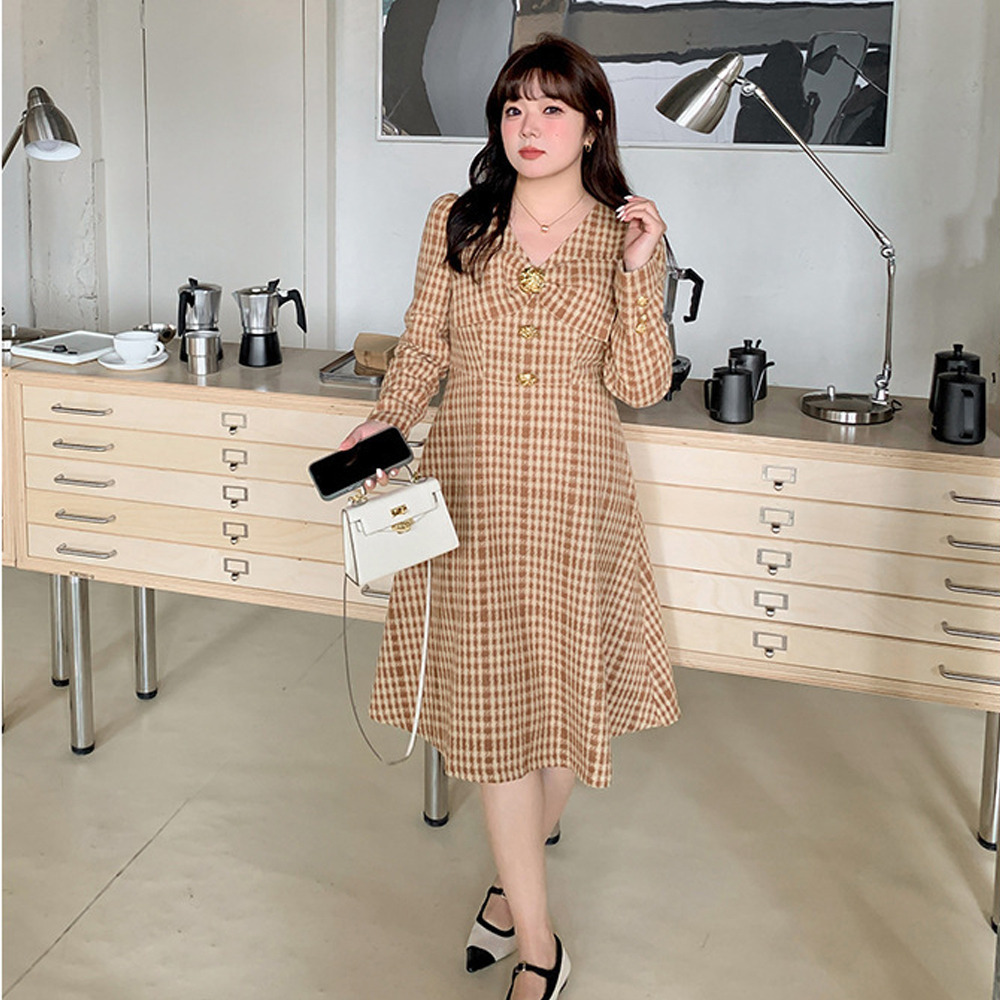 チェック柄の暖かなウールライク生地フレアワンピース。