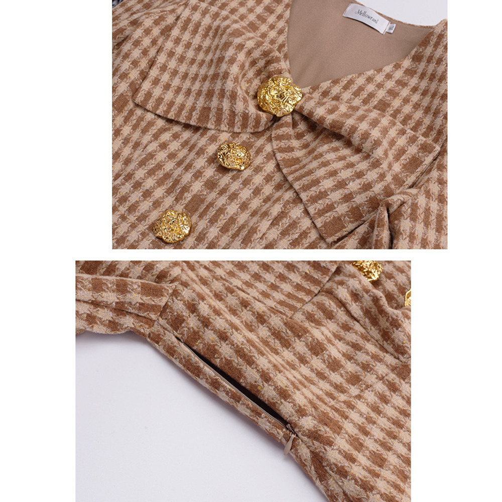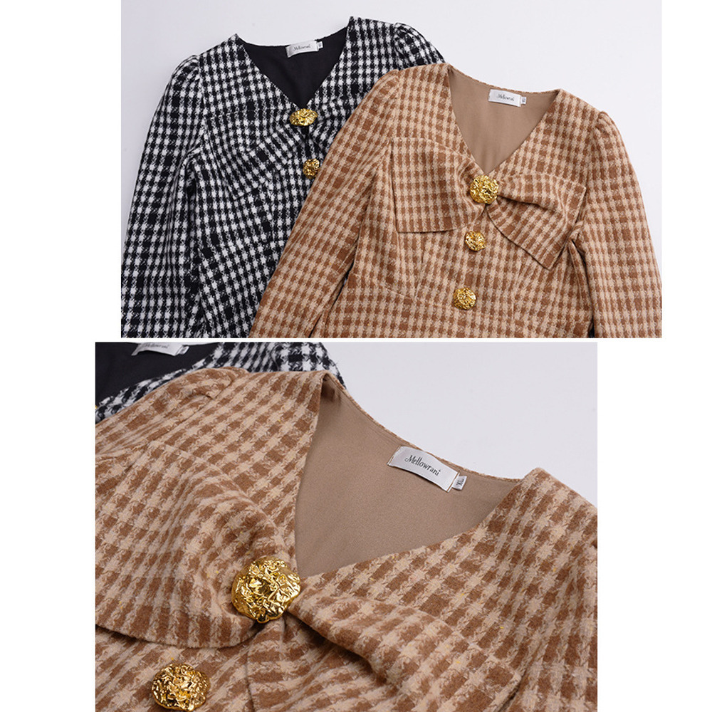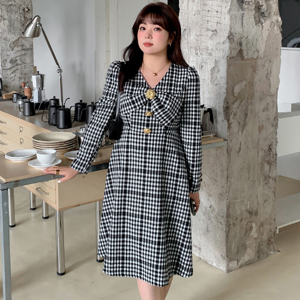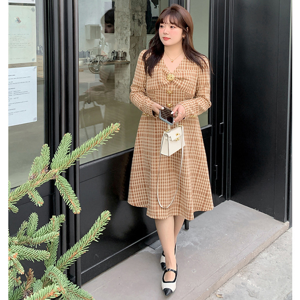 チェック柄の暖かなウールライク生地フレアワンピース。