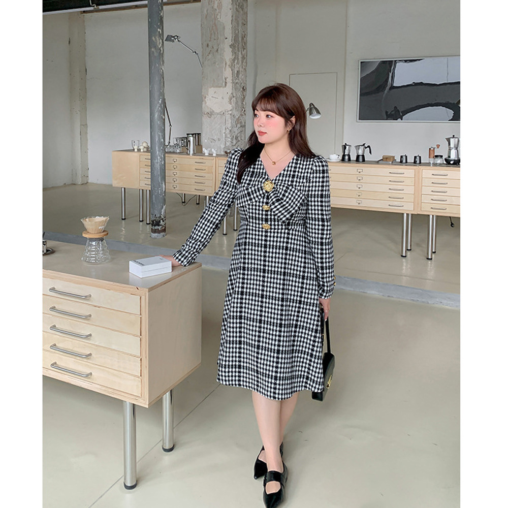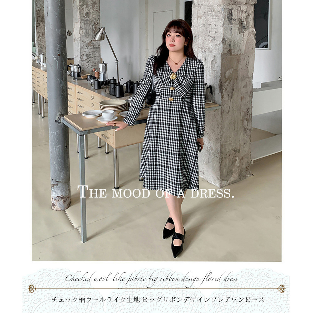 クラシカルなチェック柄 ビッグリボンデザイン フレアワンピース