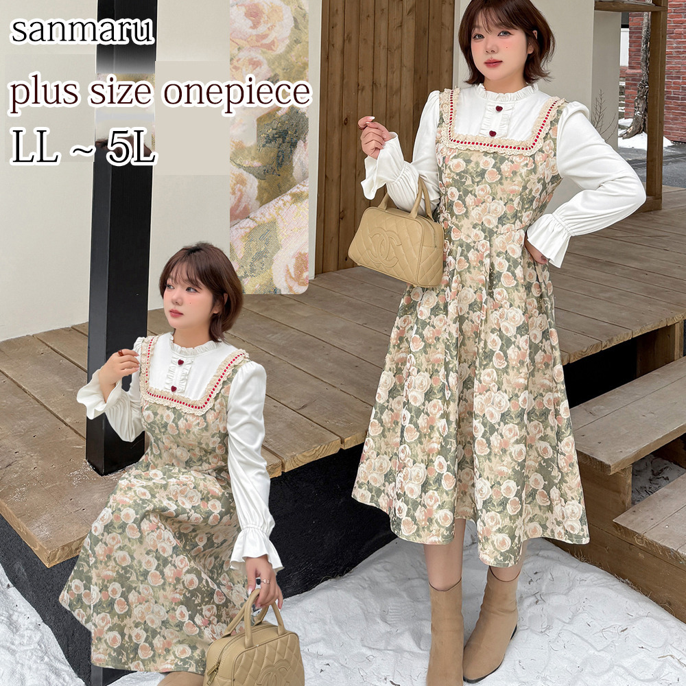 ◆大きいサイズの花柄ジャガードワンピースの詳細