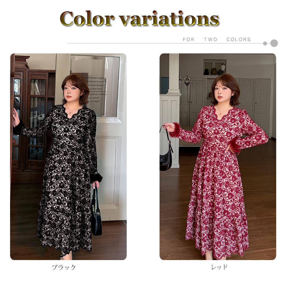 ◆大きいサイズのエレガントなフレアワンピースの詳細