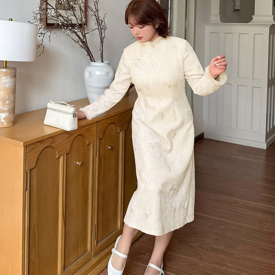 • 暖かなフリース裏地付き レース複合素材のチャイナ風ワンピース17