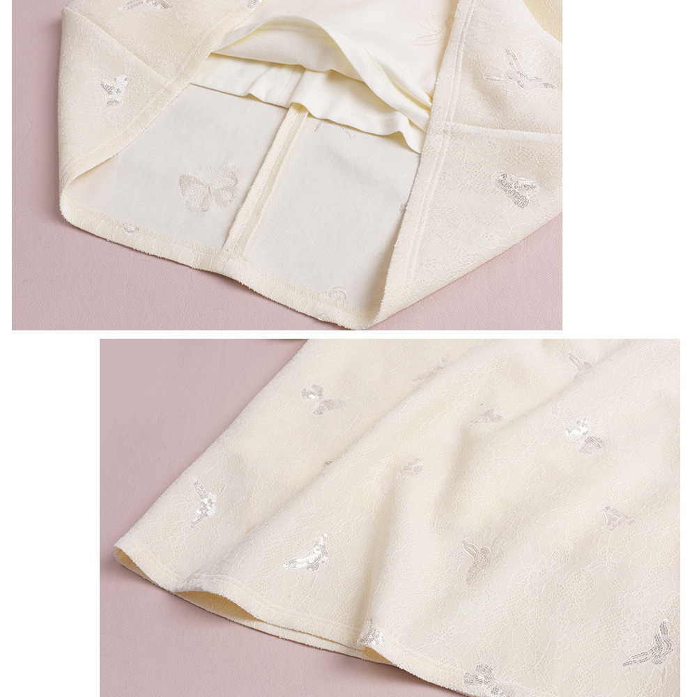 蝶のスパンコール刺繍も華やかな、フェミニンワンピです!