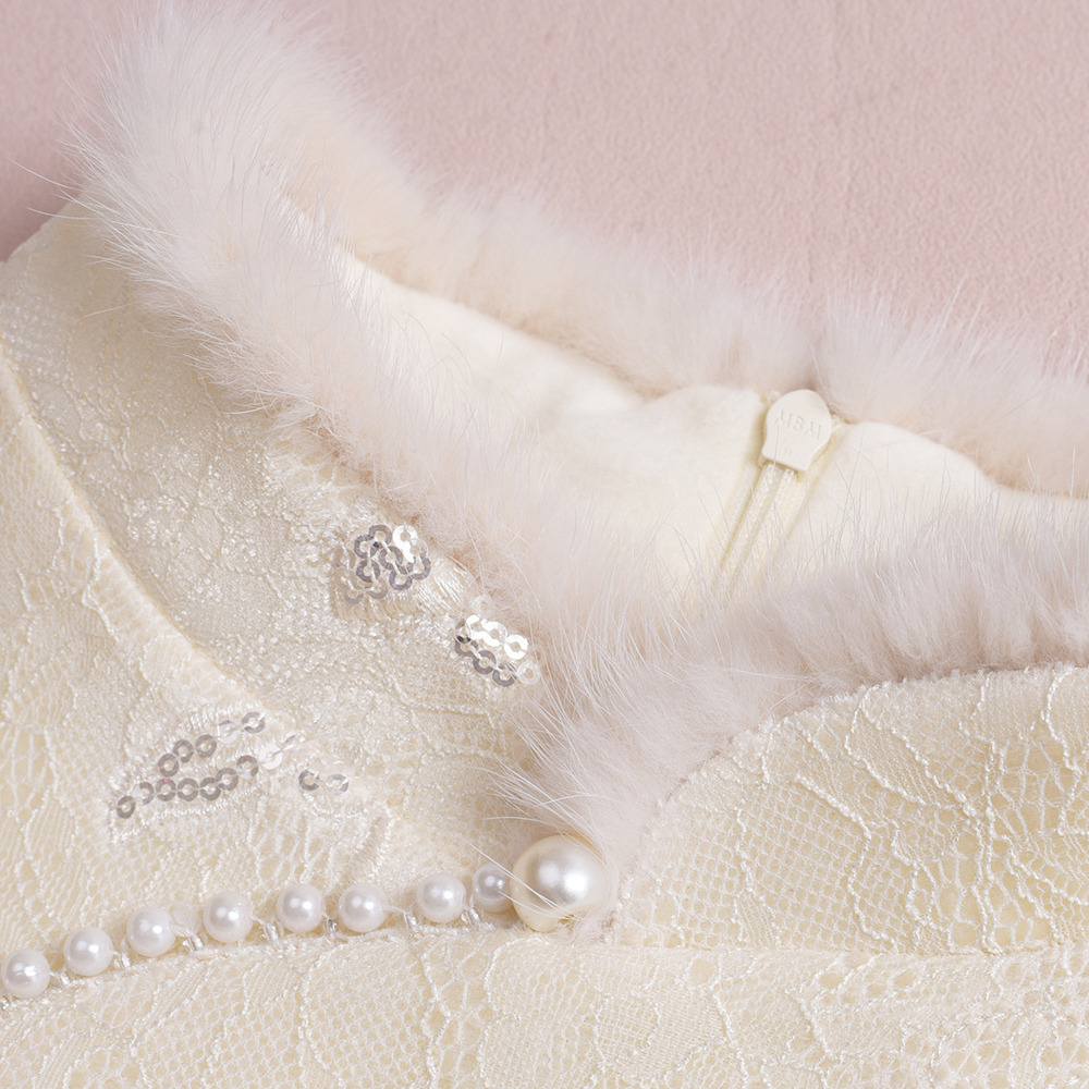 • 暖かなフリース裏地付き レース複合素材のチャイナ風ワンピース18