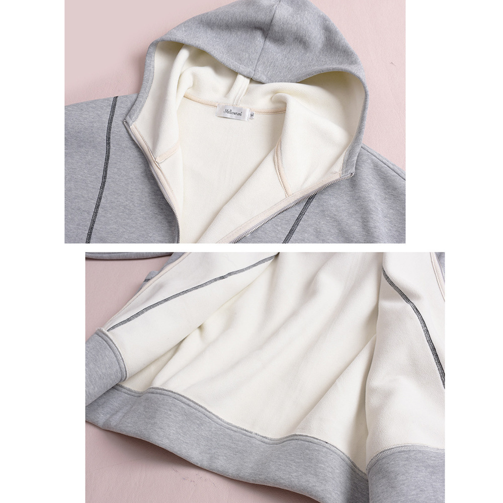 暖かく厚みのある裏フリース複合ニット素材のスウェットパーカー。