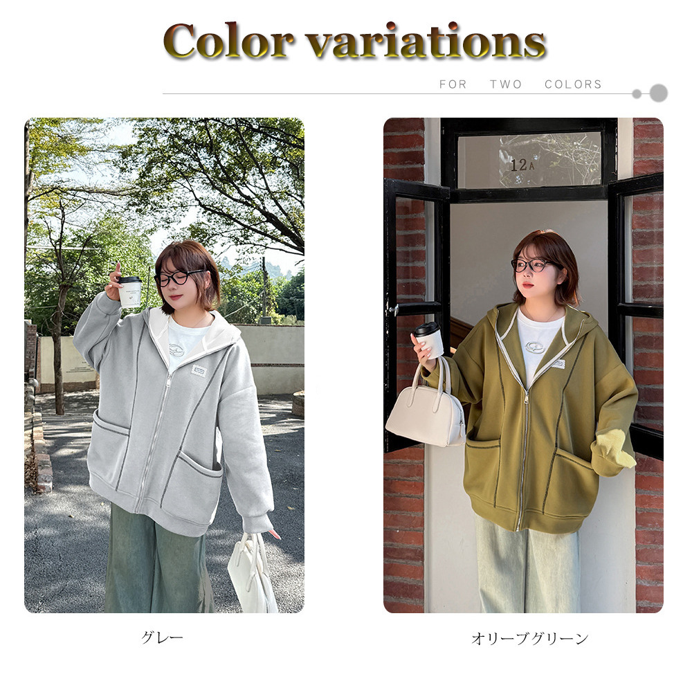 • 裏フリースで暖か!オーバーサイズ スウェットフルジップパーカー15