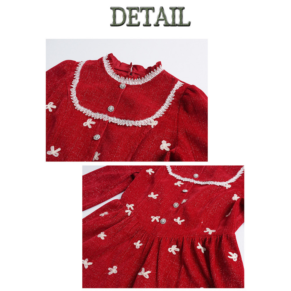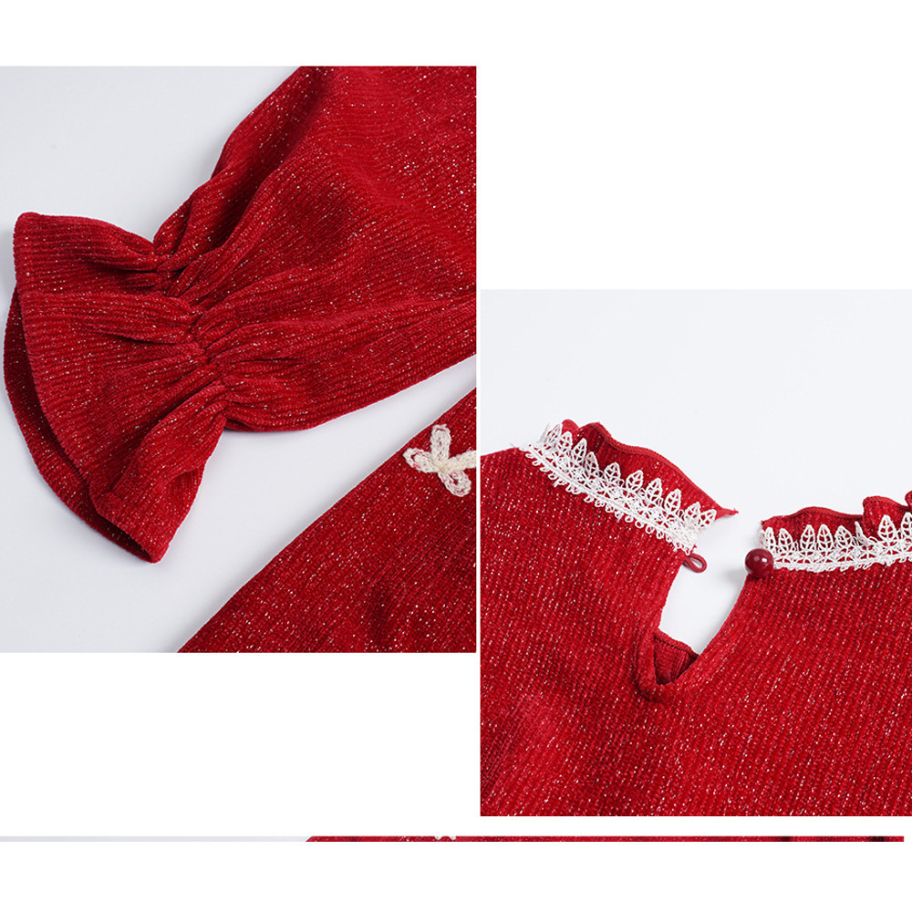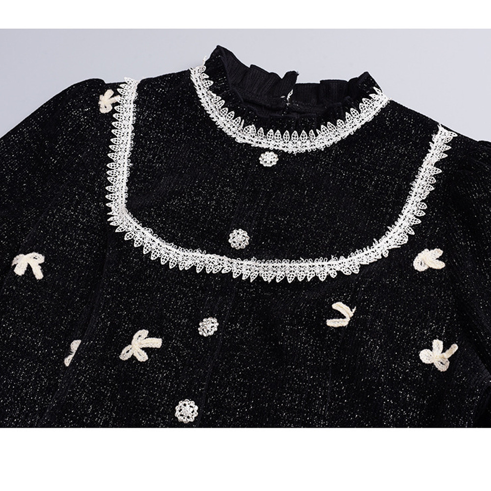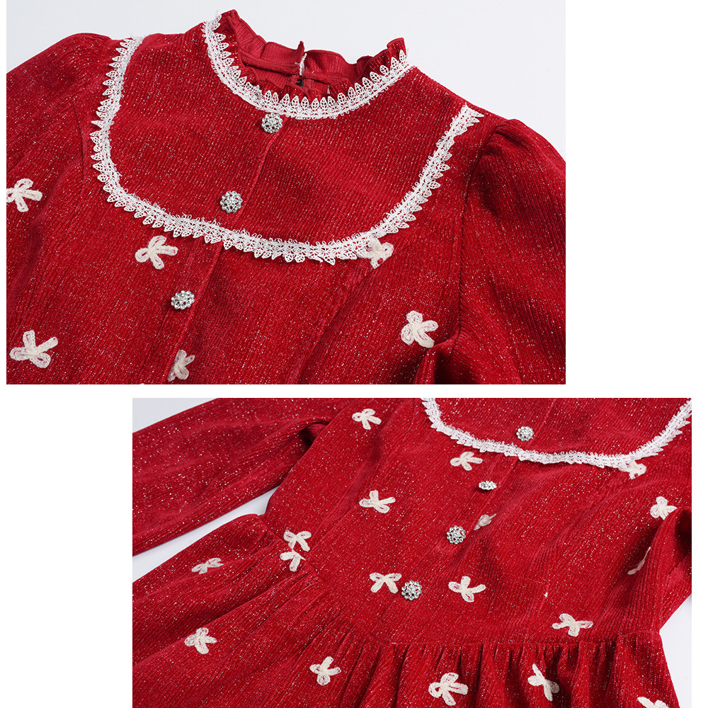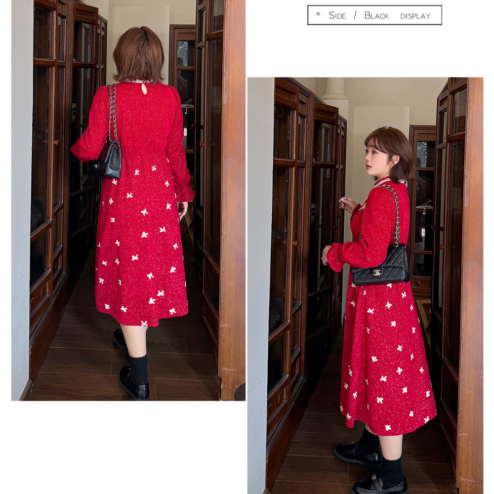 「蝶刺繍 ラメ織り込みニット生地ワンピース」