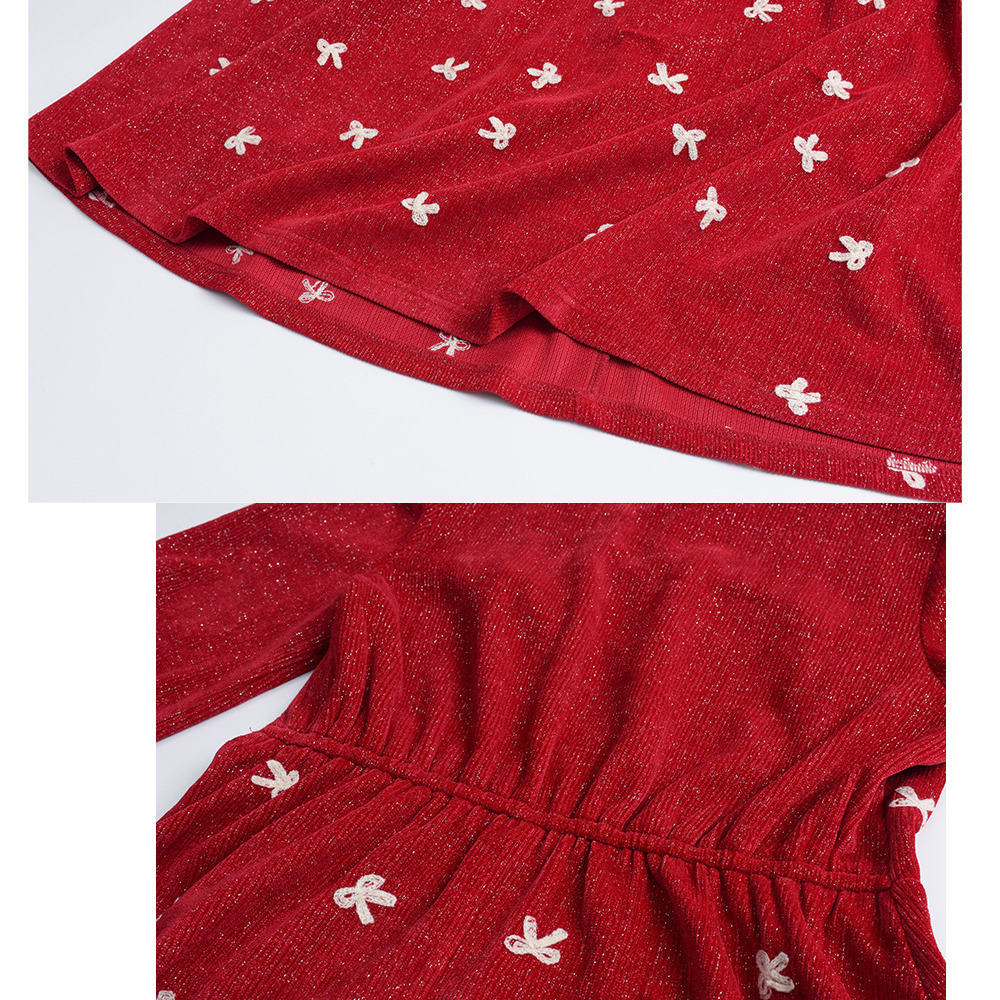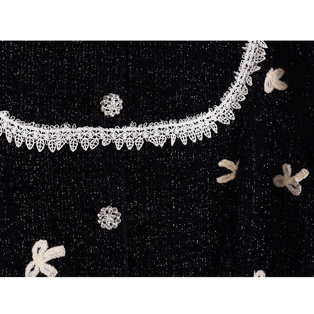ラメ入りニット生地に蝶刺繍が散りばめられたワンピース。