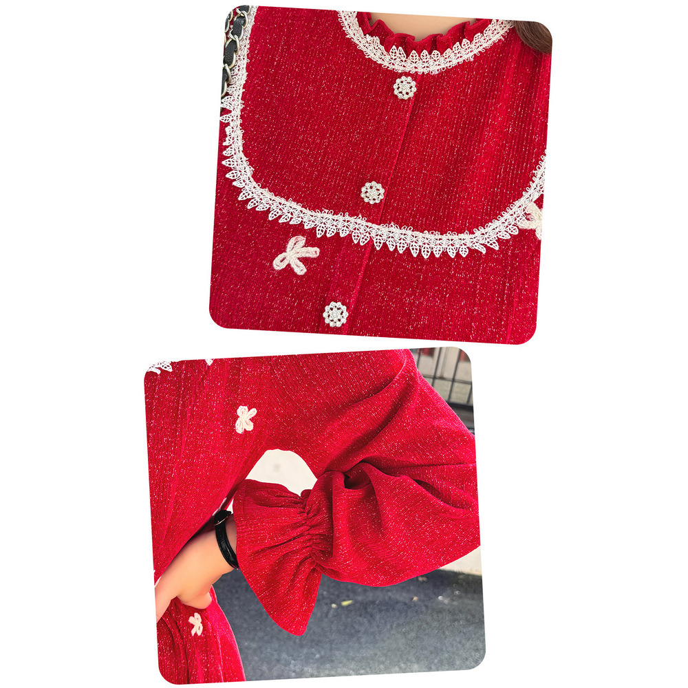 ラメ入りニット生地に蝶の詩集を散りばめたフェミニンワンピース