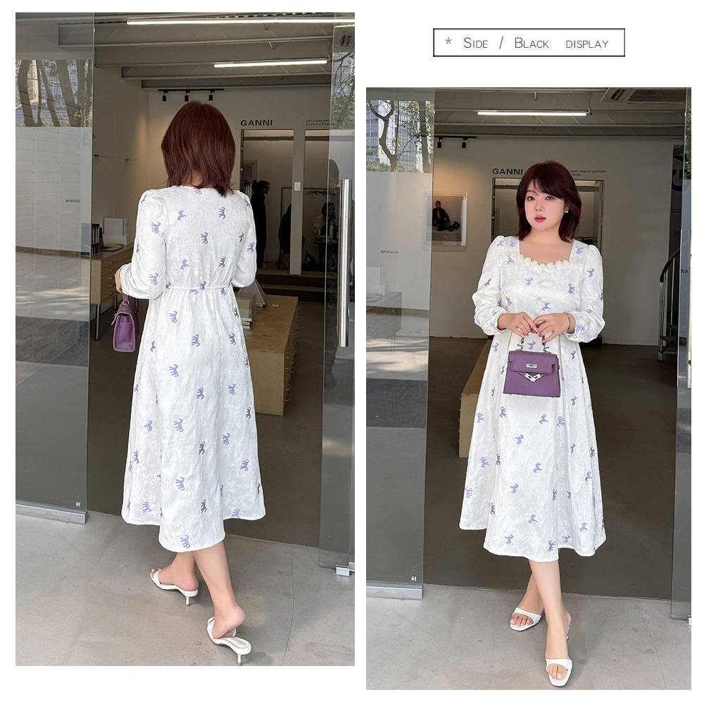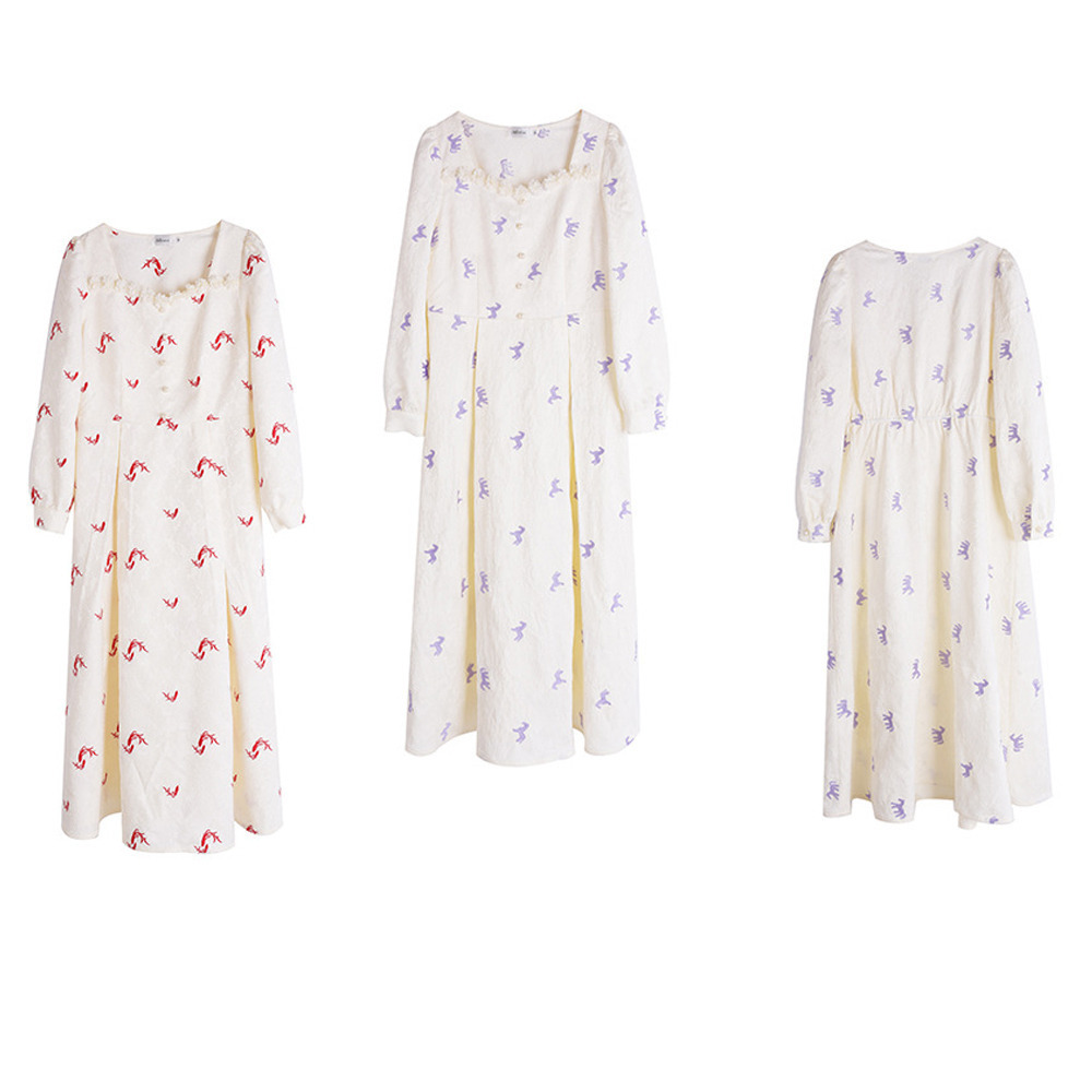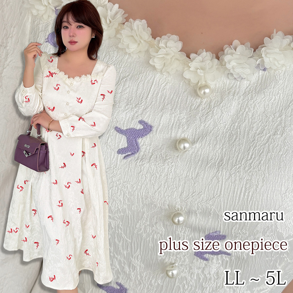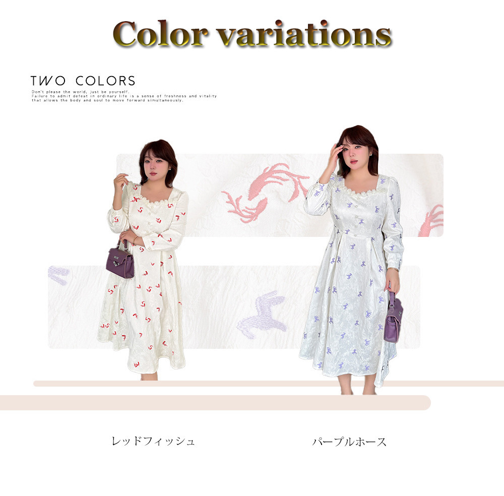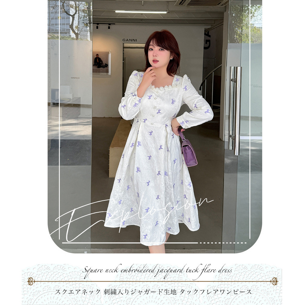ジャガード素材の2タイプの刺繍ワンピース