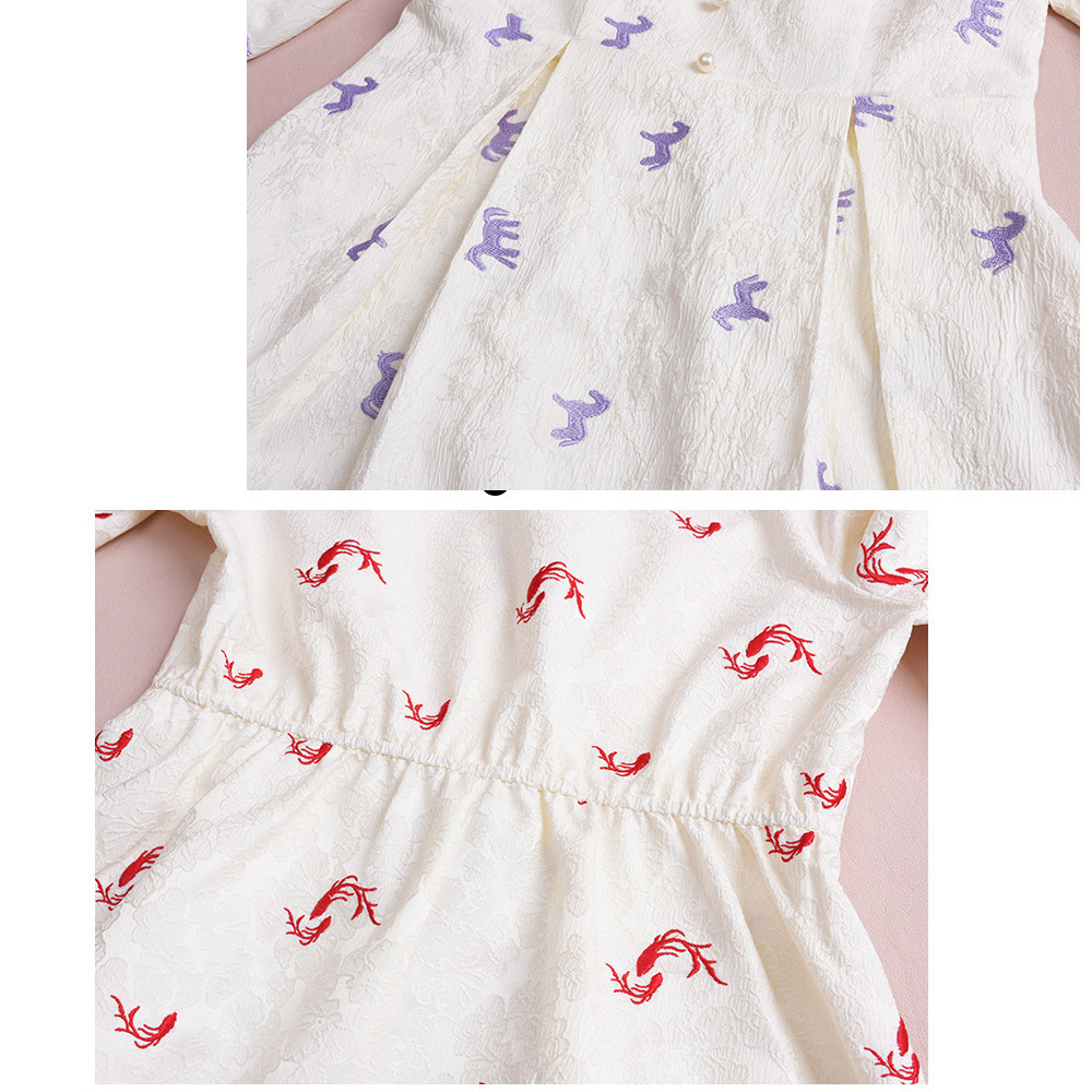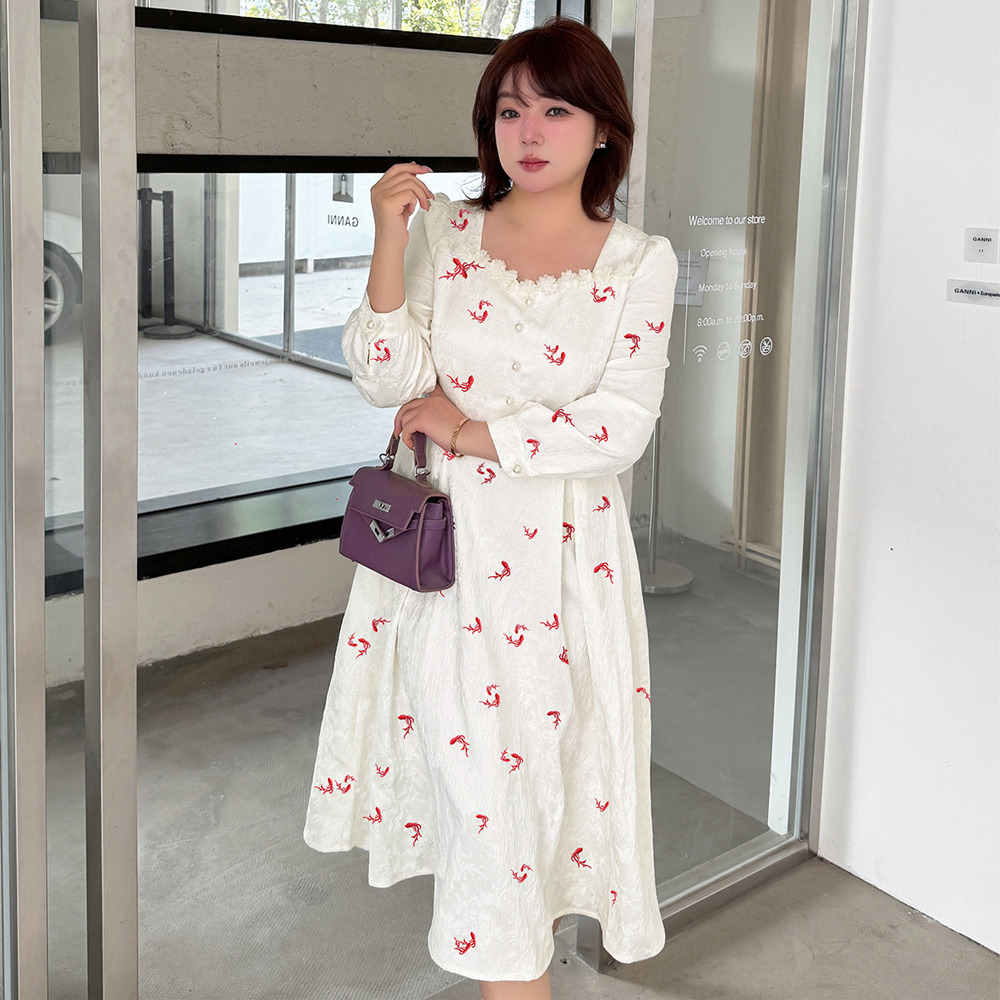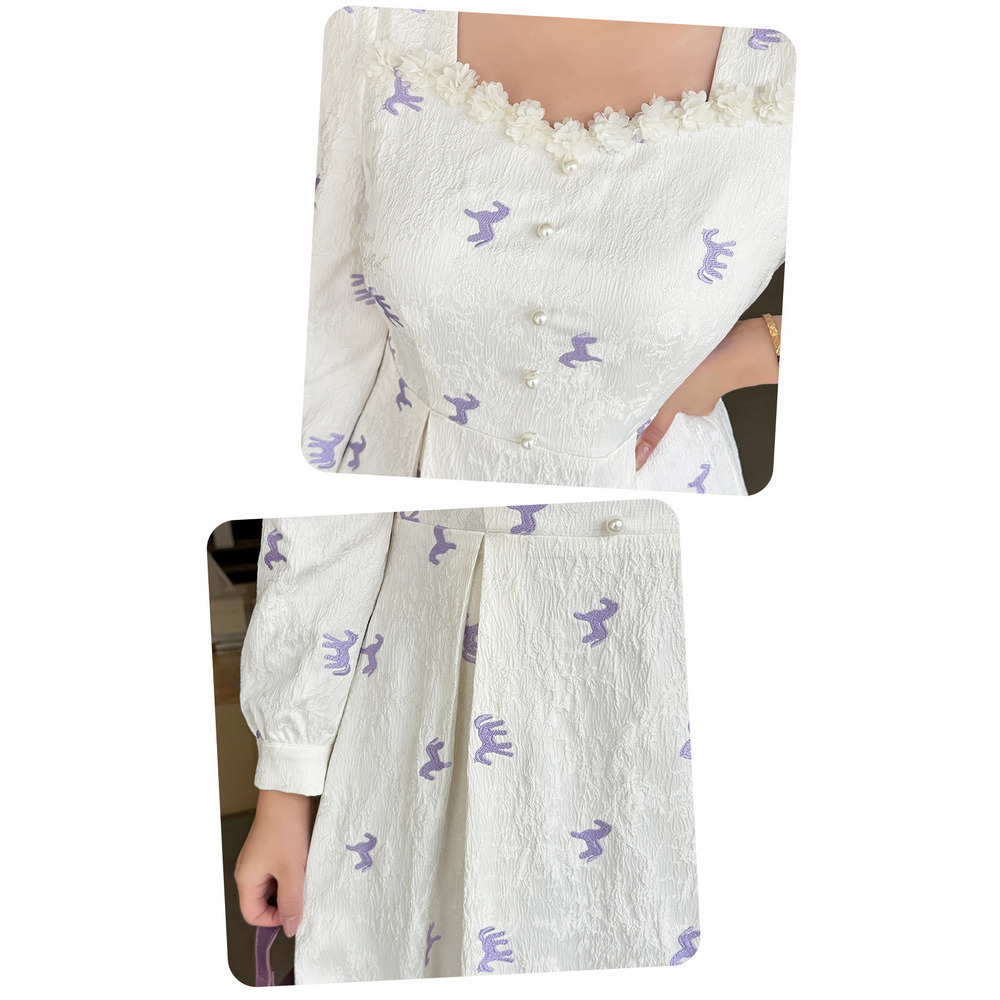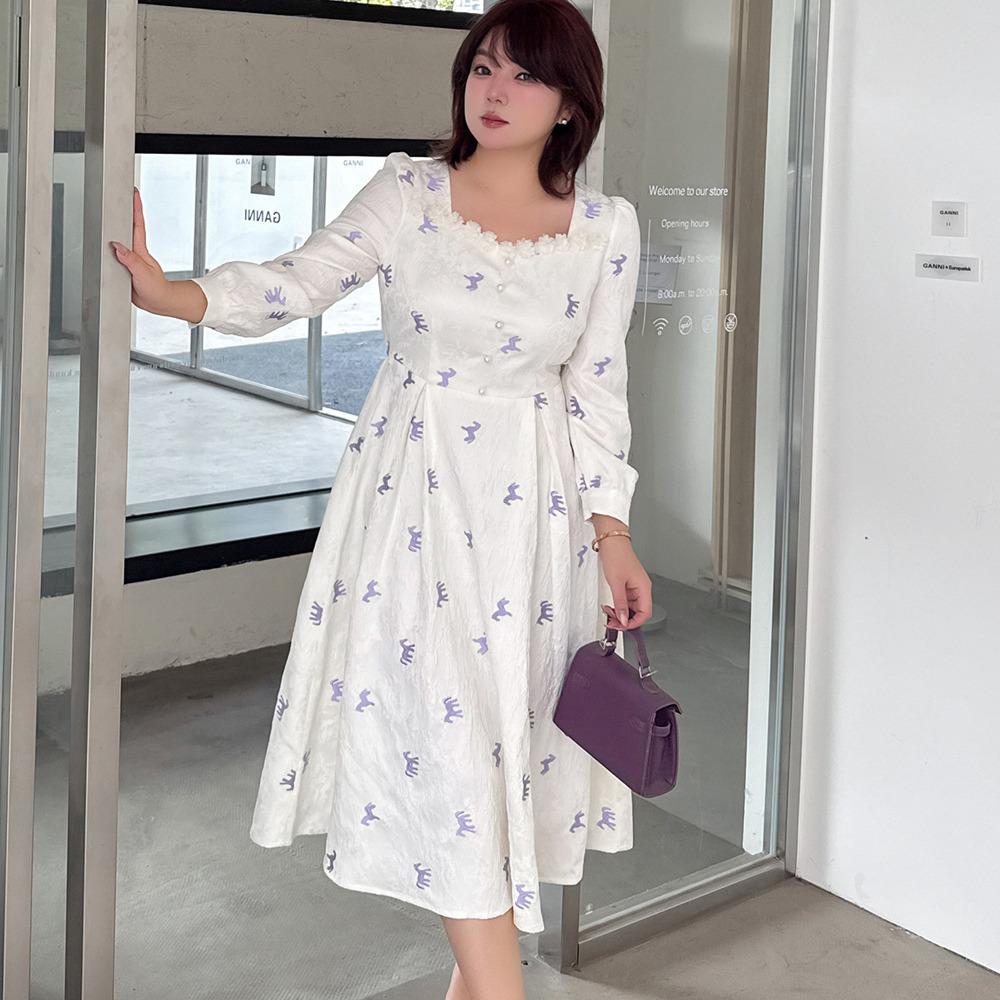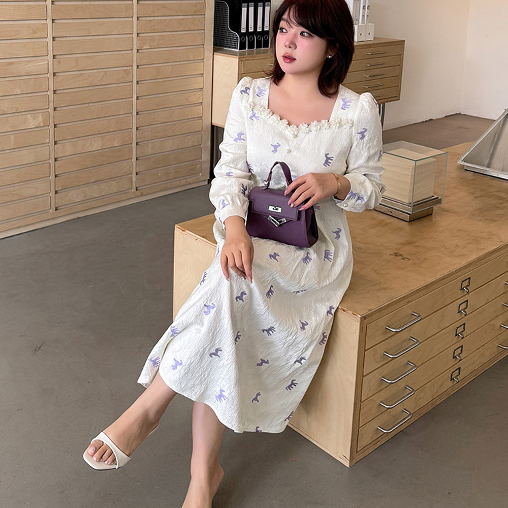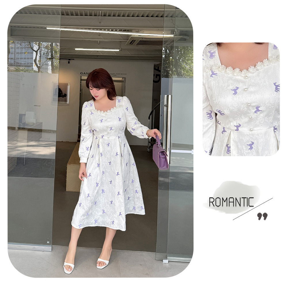 ジャガード素材の2タイプの刺繍ワンピース