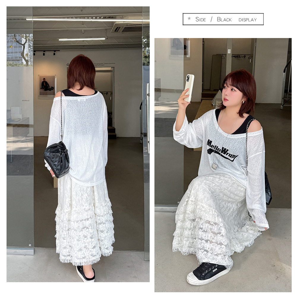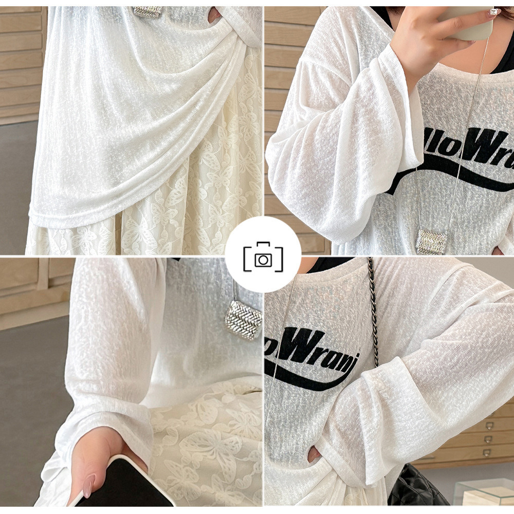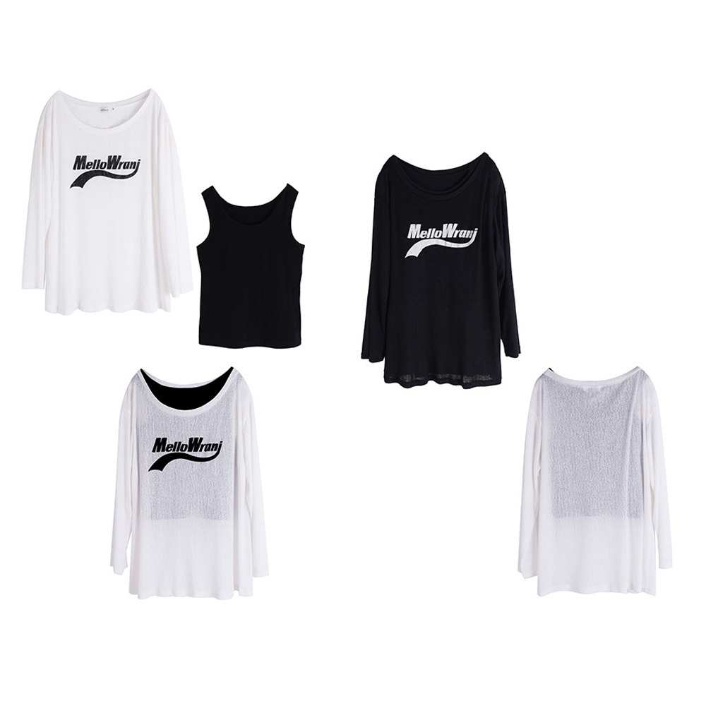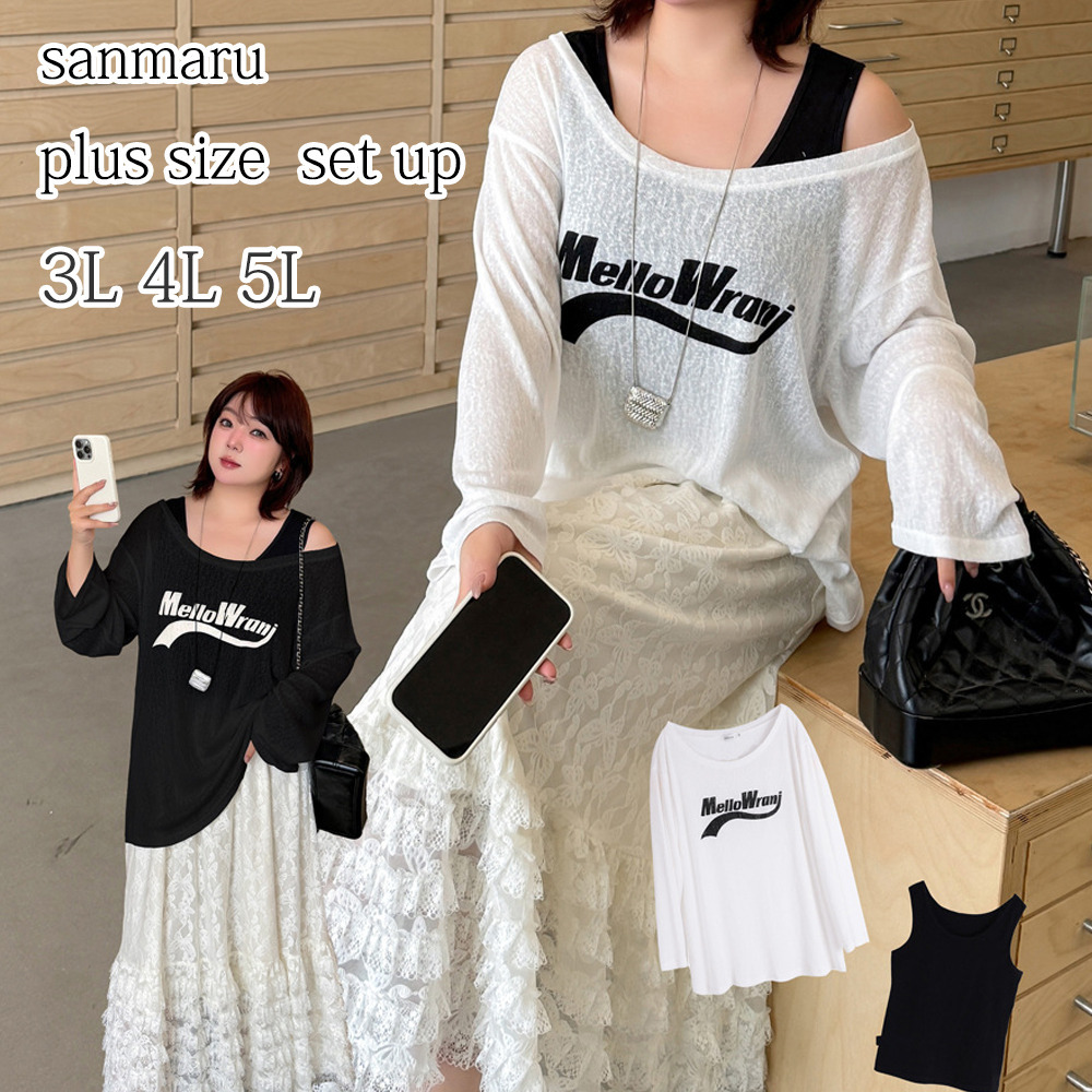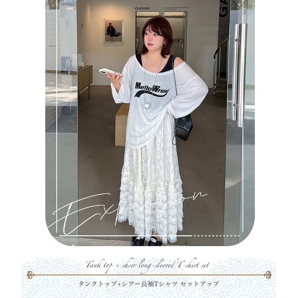 「タンクトップ+シアー長袖プルオーバーアンサンブル」
