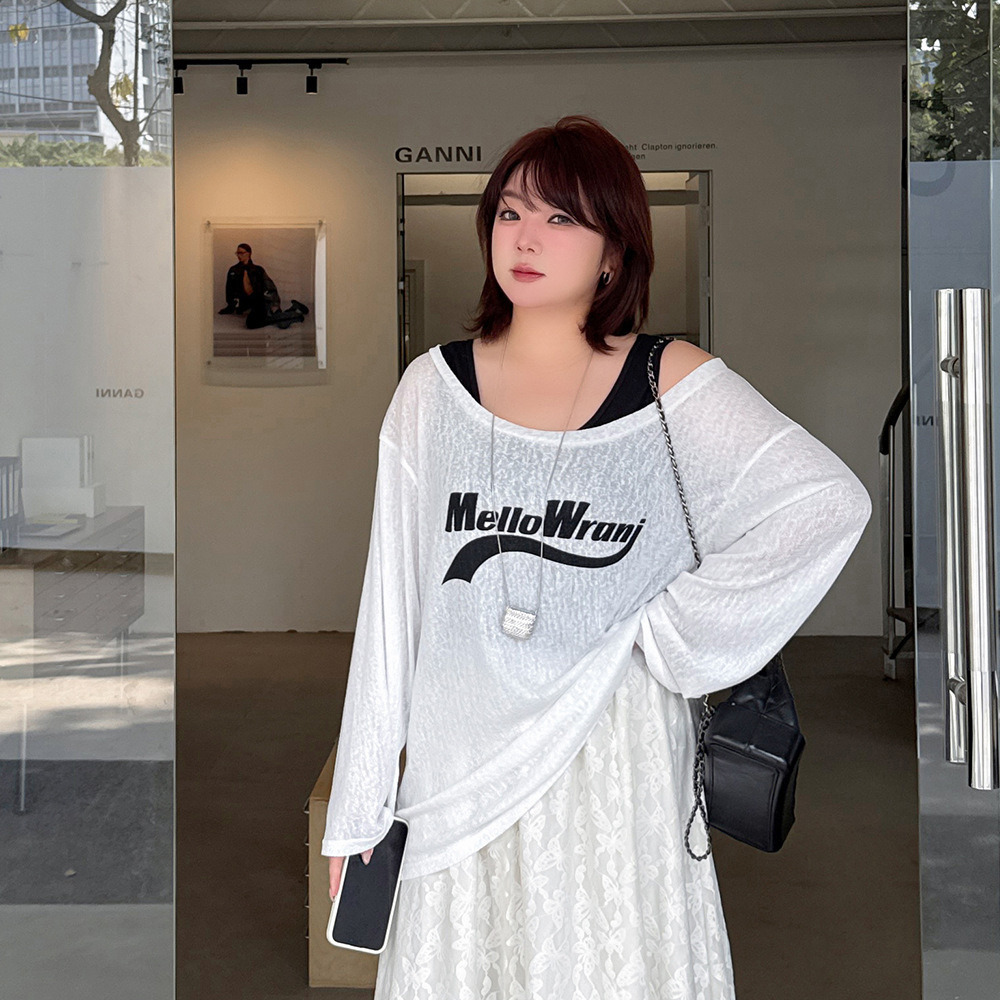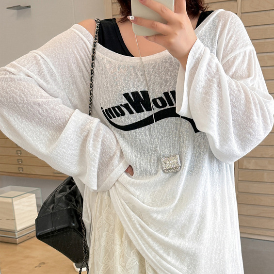 シンプルなタンクトップとシアーな長袖Tシャツとのアンサンブル。