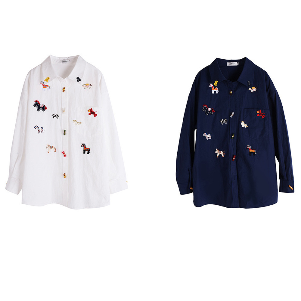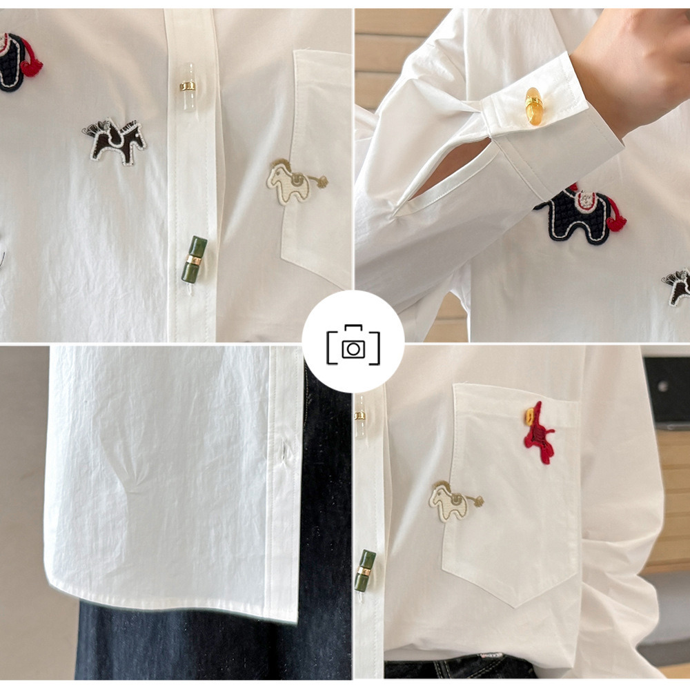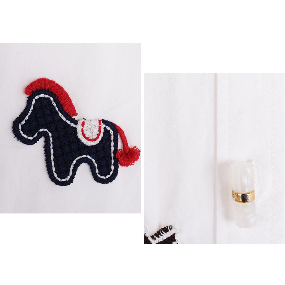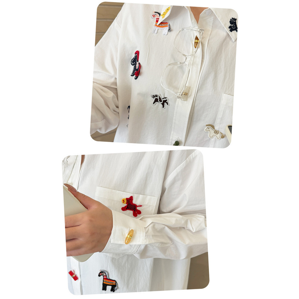 「ラッキホース刺繍入り 長袖シャツブラウス」