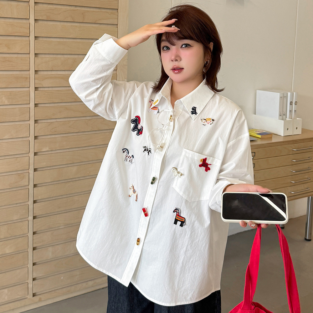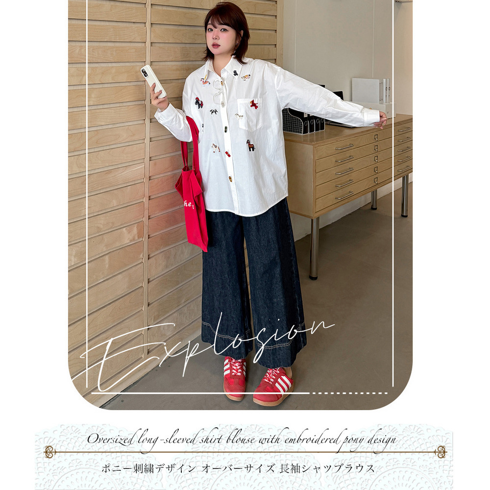 フロントのラッキホース刺繍が大人可愛い オーバーサイズ長袖シャツ