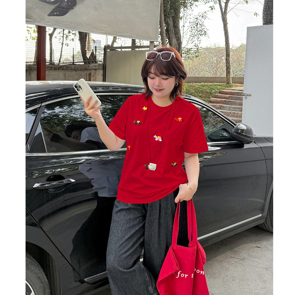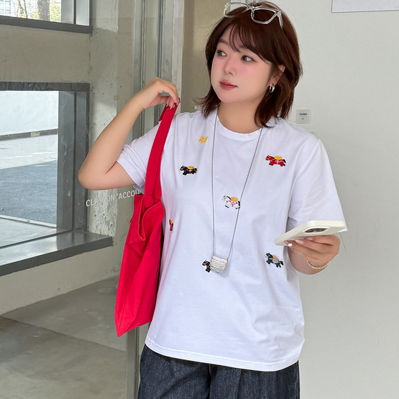 フロントのラッキホース刺繍が大人可愛いオーバーサイズ半袖TEE