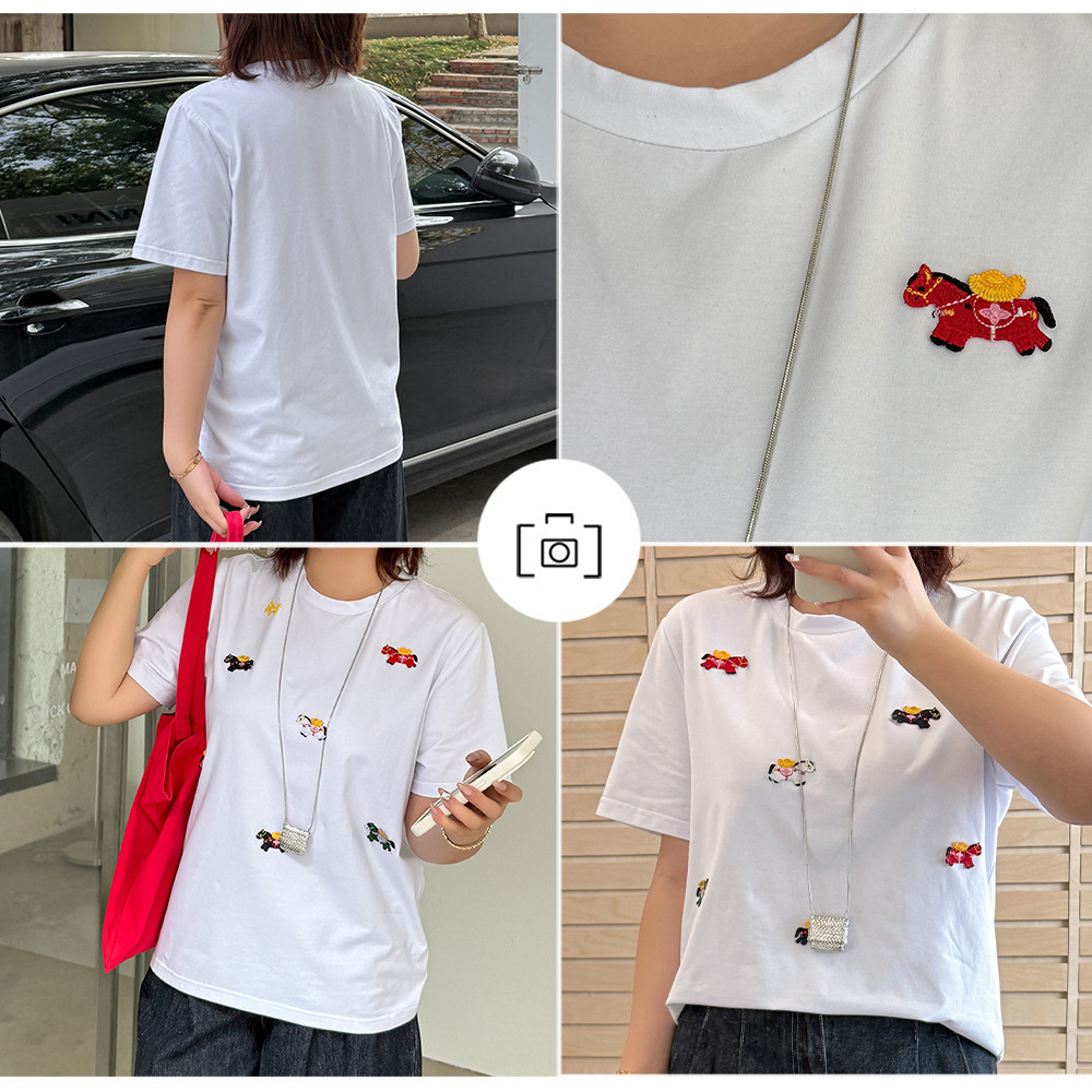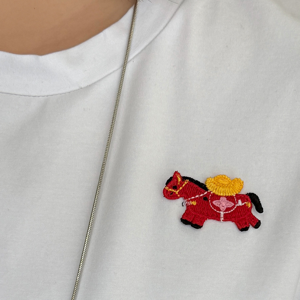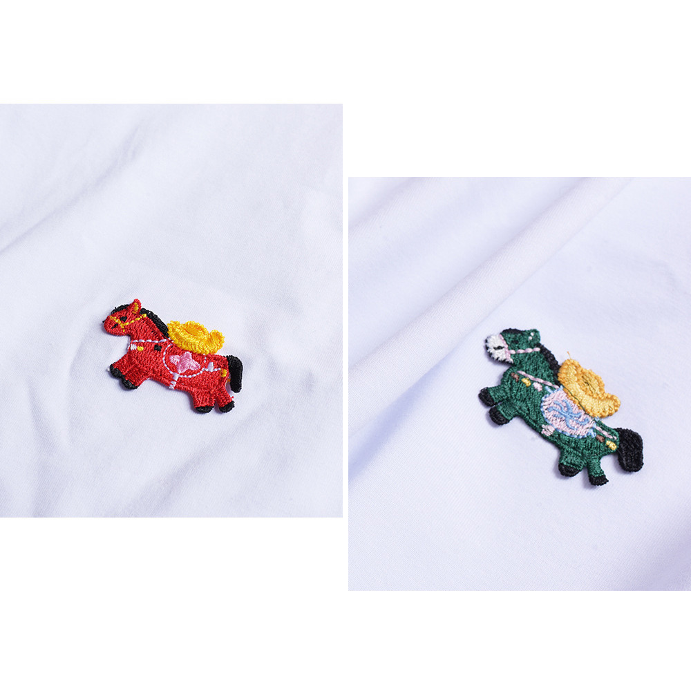 「ラッキーホース刺繍デザイン 半袖Tシャツ」