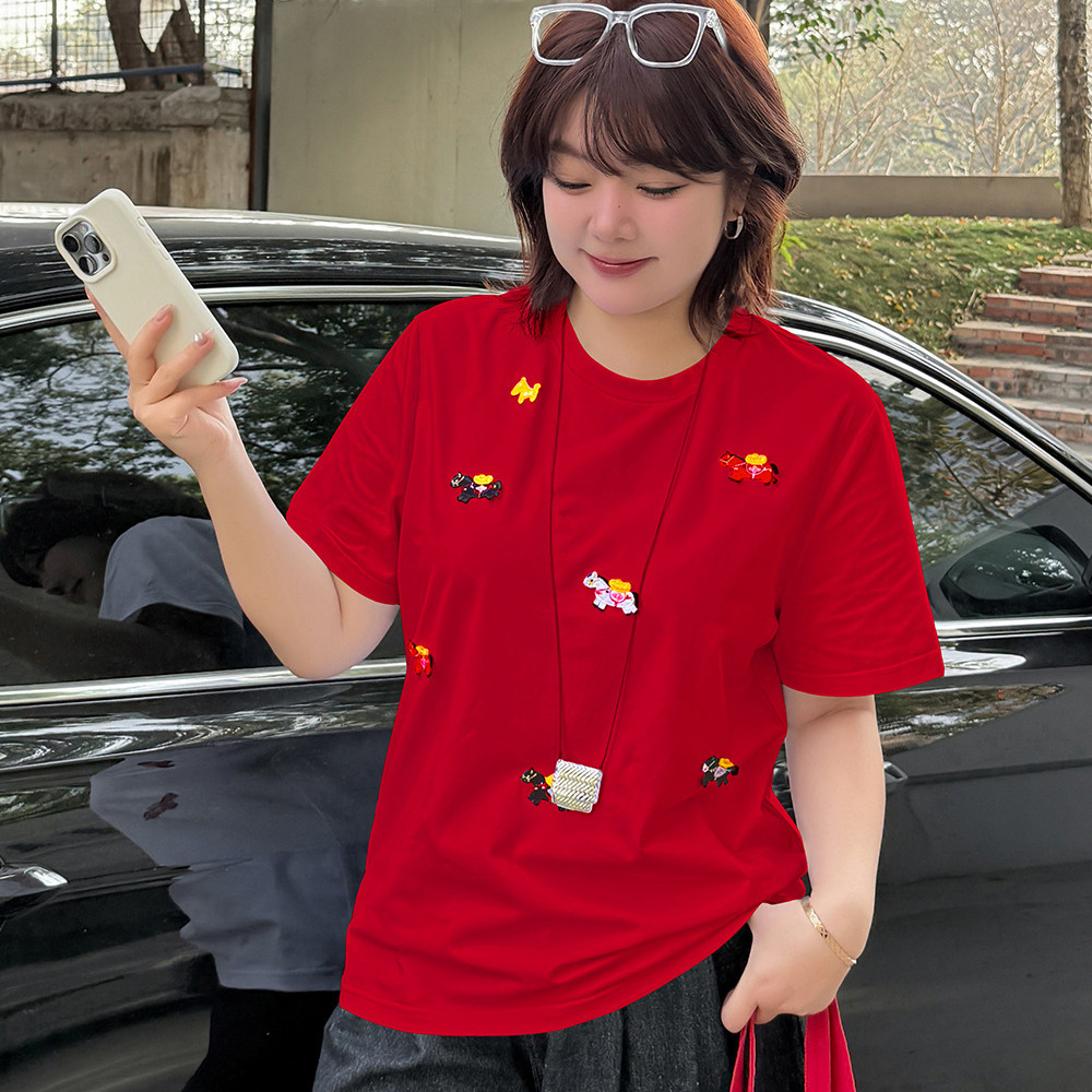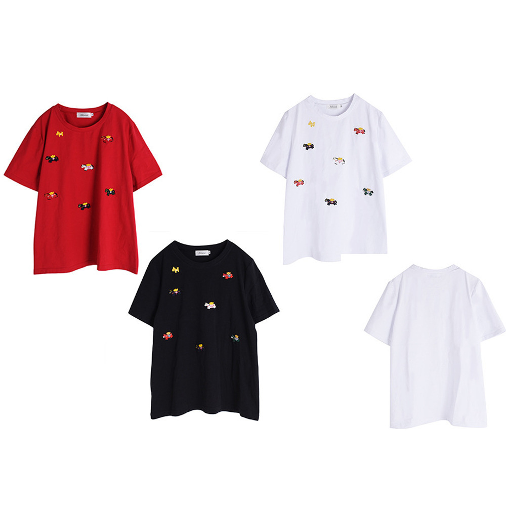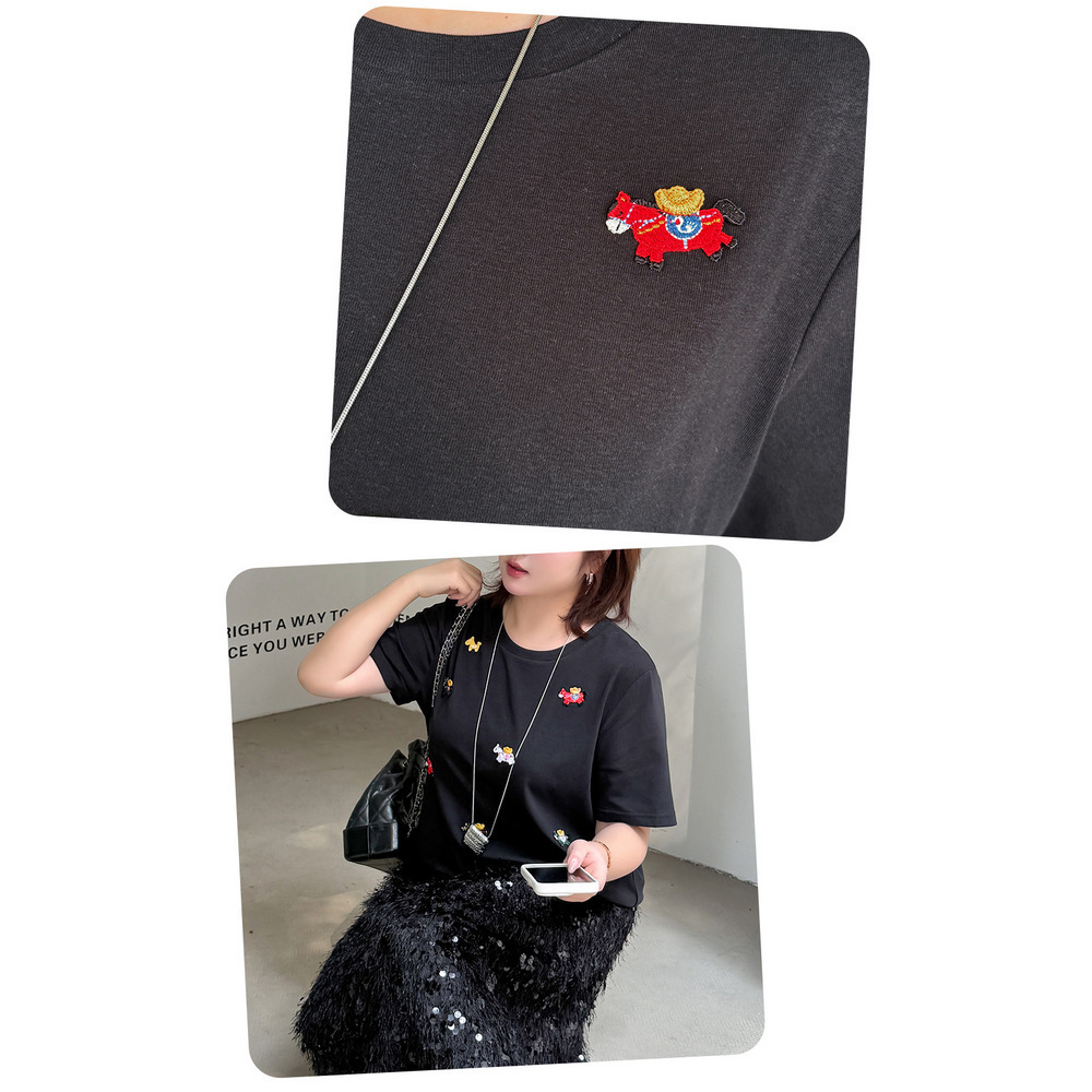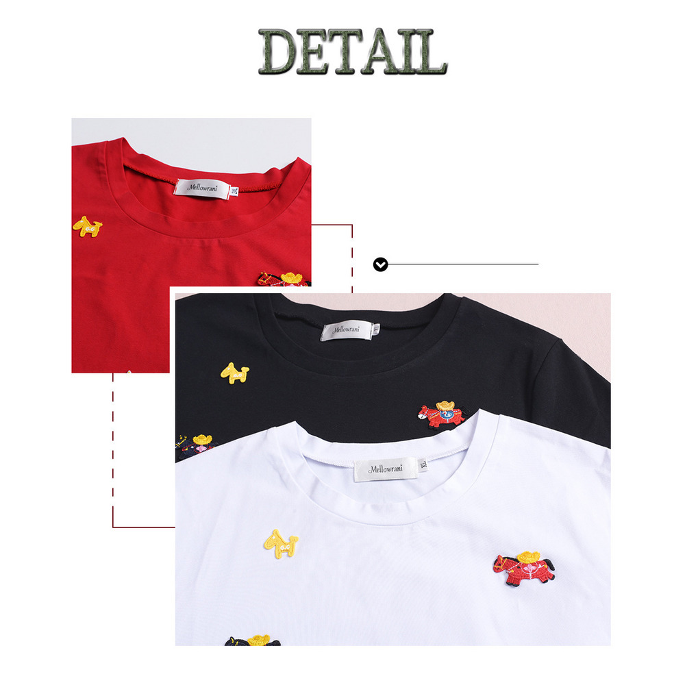 「ラッキーホース刺繍デザイン 半袖Tシャツ」