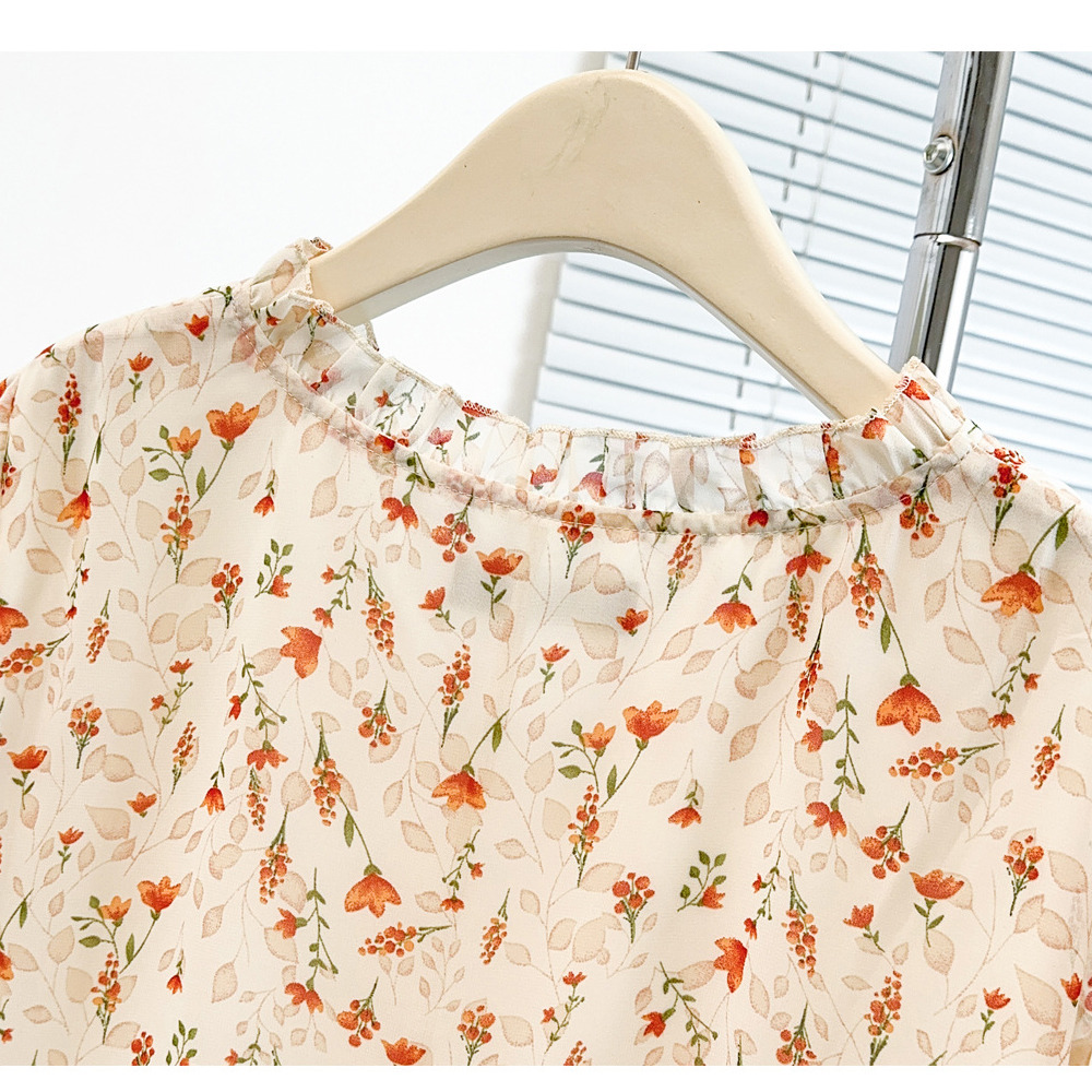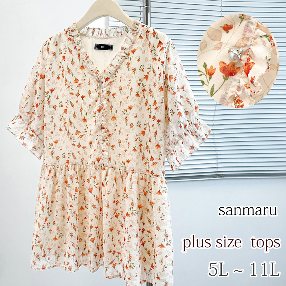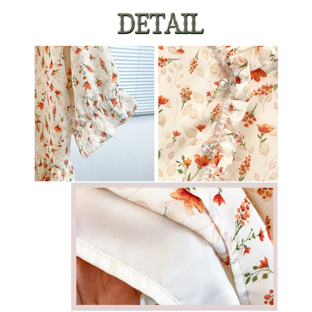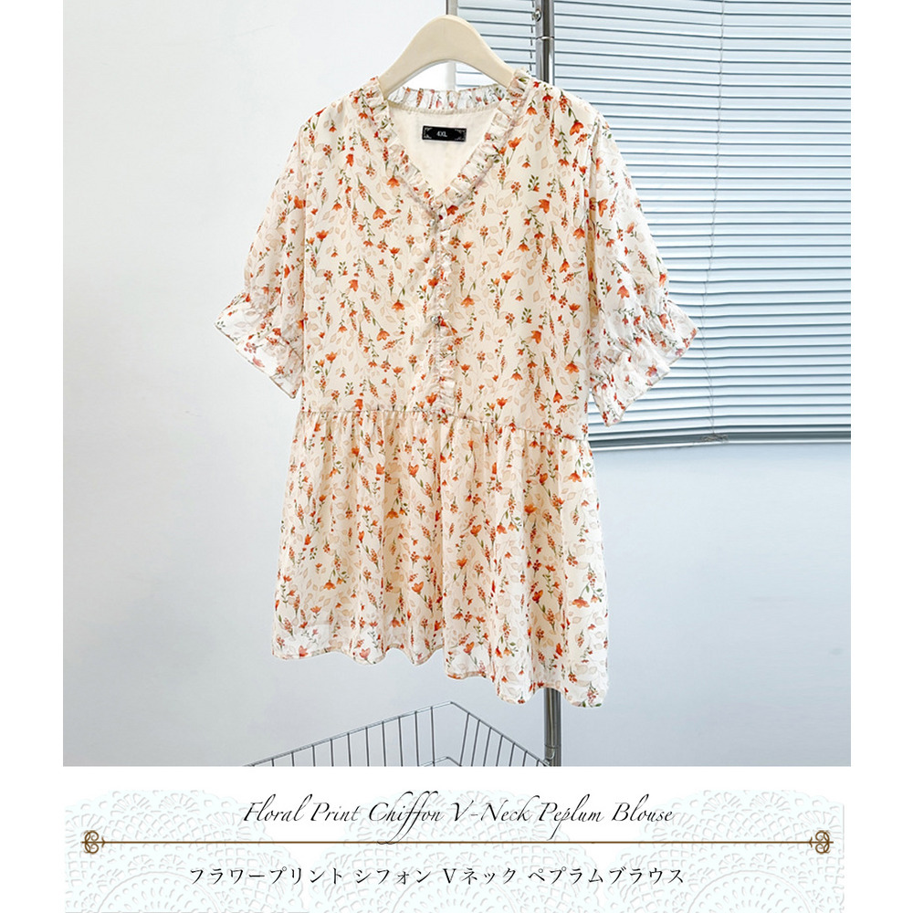 「シフォンフラワープリント プルオーバーブラウス」